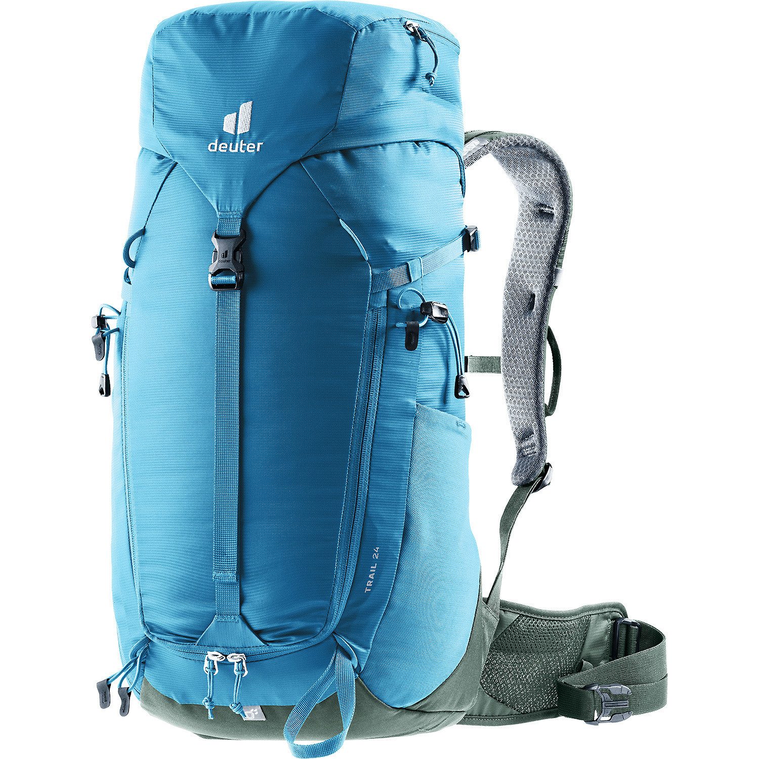 Deuter Rucksack Trail 24. Das Airstripes Rückensystem mit geringer Rückenauflage und großen Belüftungskanälen sowie die perforierten Schulterträger und Hüftflossen sorgen für optimale Luftzirkulation, körpernahe Gewichtsverteilung und damit einen kompakten Sitz in jedem Terrain. Die flache Deckelkonstruktion bietet gute Kopffreiheit - auch mit Helm. Dank Fixierungen an den Schulterträgern sind die Karabiner des Klettersteigsets stets griffbereit. Zudem sind Ausrüstungsgegenstände und Material dank großem Reißverschluss-Frontzugang und Seitentaschen schnell zur Hand. Volumen: 24 Liter. Maße: 64/24/20 (H x B x T) cm Material: 100% Polyester.