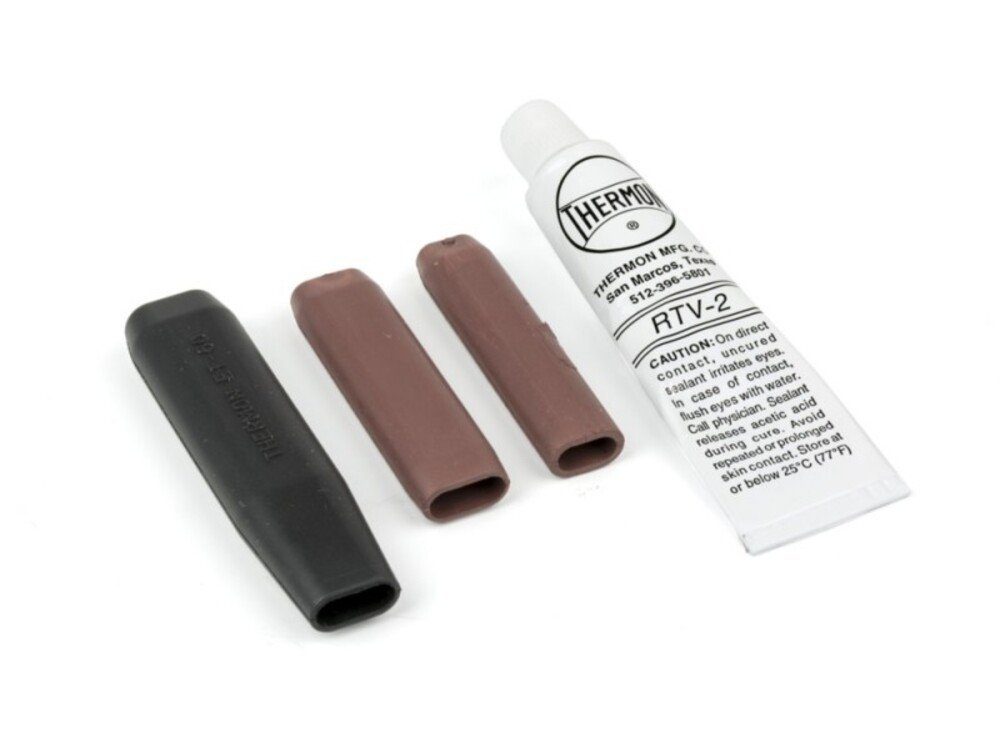 Heizband-Endabschluss, bestehend aus 2 Endkappen und einer Dichtmasse zur Herstellung des Heizband-Endaschlusses, Nennspannung: 240 V, Nennstrom: 16 A, Temperaturbereich von -40°C bis 100°C, Schutzart IP 68, Anschluß darf nicht im Wasser liegen, Entspricht Standards: DIN VDE 0606 T200, DIN EN 61984, VDE 0110 IEC 60999