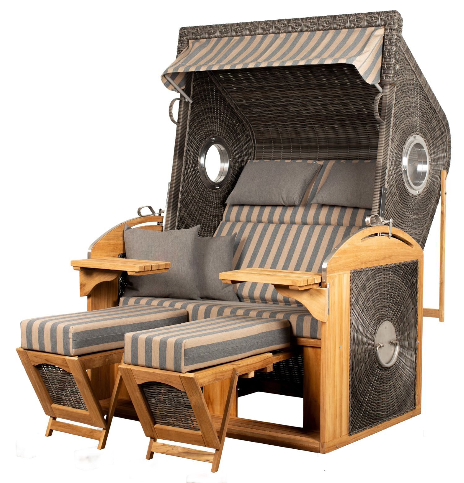 Das Wichtigste auf einen BlickWenn Sie für Ihren Garten eine exklusive Kombination aus Design, Komfort und Langlebigkeit suchen, ist der deVries Strandkorb Sailor XL inkl. Schutzhülle die perfekte Wahl. Aus hochwertigem Teakholz und einem eleganten PE-Rattangeflecht in der Farbe stone grey gefertigt, vereint dieser Strandkorb höchste Qualität und zeitlose Eleganz.