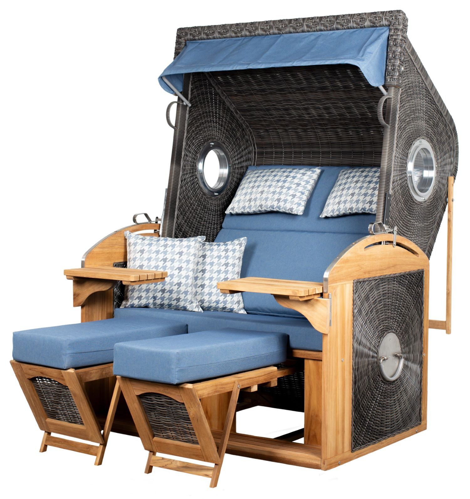 Das Wichtigste auf einen BlickWenn Sie für Ihren Garten eine exklusive Kombination aus Design, Komfort und Langlebigkeit suchen, ist der deVries Strandkorb Sailor XL inkl. Schutzhülle die perfekte Wahl. Aus hochwertigem Teakholz und einem eleganten PE-Rattangeflecht in der Farbe stone grey gefertigt, vereint dieser Strandkorb höchste Qualität und zeitlose Eleganz.