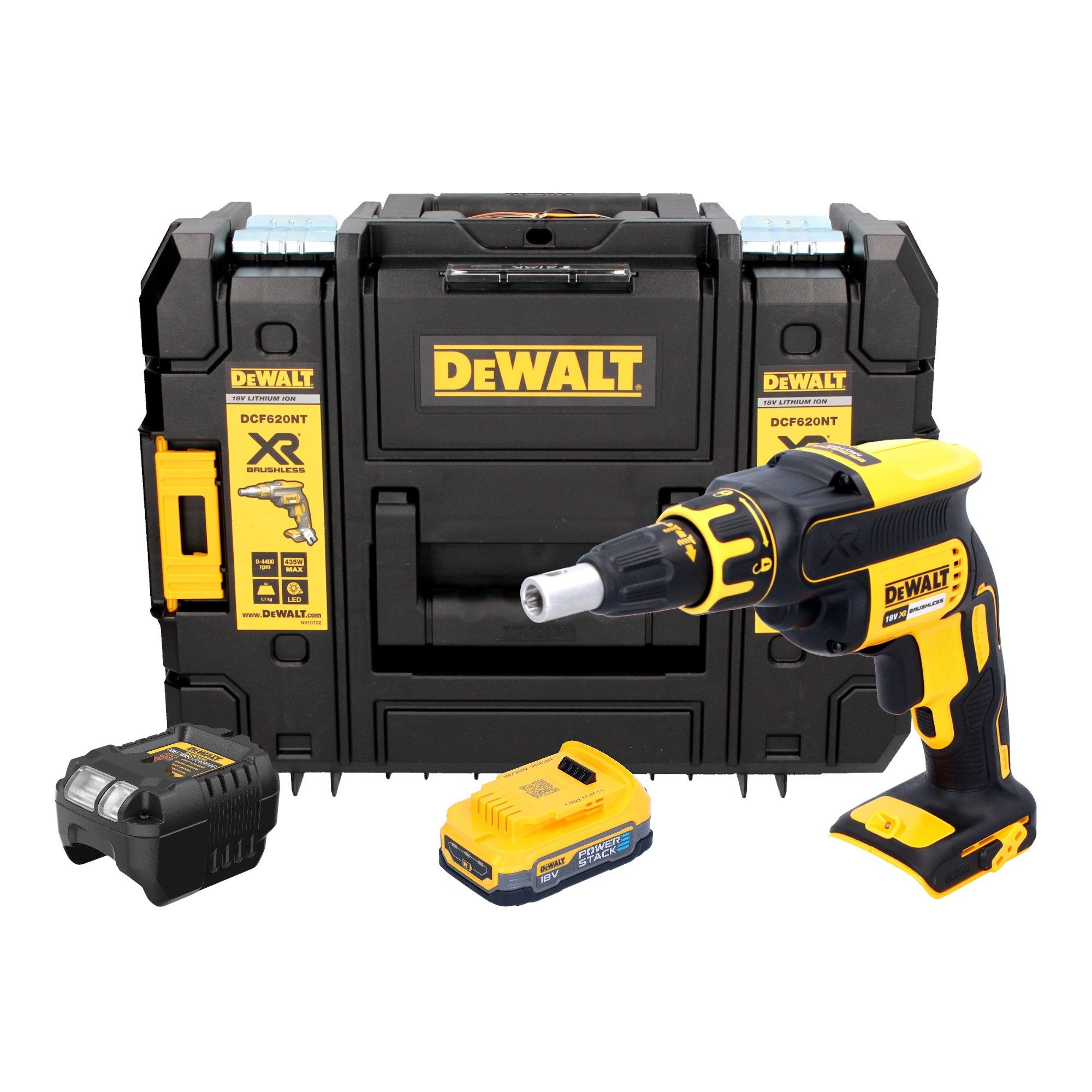 Der DeWalt DCF 620 ist ein 18 Volt starker, akkubetriebener Trockenbauschrauber mit starkem, bürstenlosen Motor und der damit verbundenen kompakten Bauweise und maximaler Laufzeit. Durch das geringe Gewicht und die kompakte Bauweise kann mit dem DCF 620 auch an engen Stellen komfortabel gearbeitet werden. Der ergonomisch strukturierte Pistolengriff, sowie der Feststellschalter erlauben ermüdungsarmes und leichteres Arbeiten für eine längere Zeit. Mit dem Tiefenanschlag lassen sich präzise und mit hoher Wiederholgenauigkeit die einzelnen Schraubtiefen einstellen. Kleine technische Feinheiten wie die integrierte LED zum Ausleuchten des Arbeitsplatzes, der praktische Gürtelclip garantieren einen stetigen und schnellen Arbeitsfortschritt.