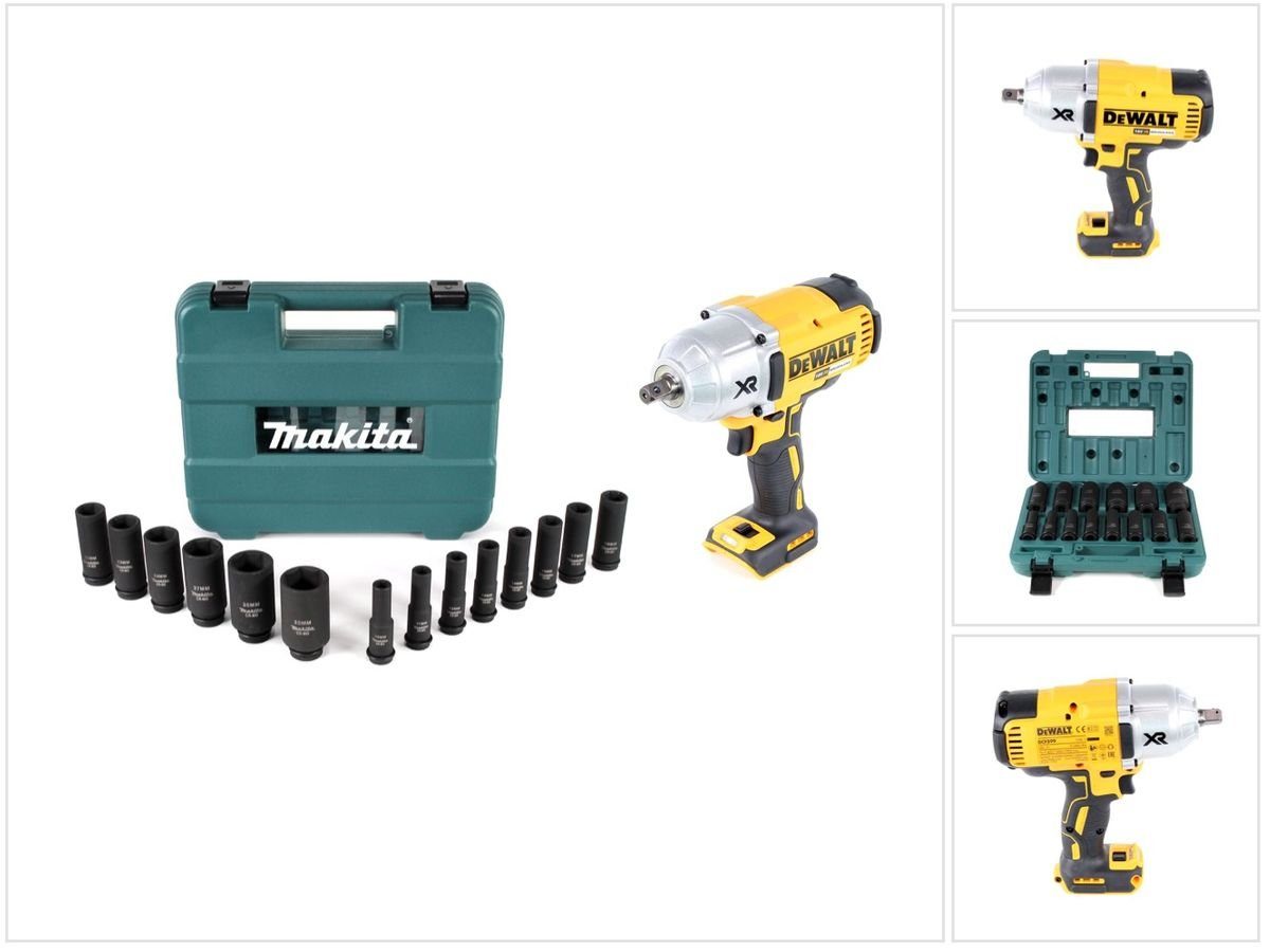 Der Schlagschrauber wurde für den professionellen Einsatz bei Schlagbohrbarbeiten für Befestigungen konstruiert. Die Schlagbohrfunktion ist besonders hilfreich zum Eintreiben von Befestigungsteilen in Holz, Metall und Beton. Der DCF 899 überzeugt mit seinem luftgekühlten Hochleistungsmotor, einem extrem hohen Drehmoment und einem perfekt abgestimmten Dreh- und Schlagzahlverhältnis. Die innovative Brushless-Technologie (bürstenlos), das Getriebe und Schlagwerk aus Vollmetall und das robuste Aluminium-Gehäuse sorgen für eine lange Lebensdauer des Gerätes. Das Werkzeug verfügt über eine 1/2" Außenvierkant-Aufnahme mit Pin für extra starken Halt der Einsatzwerkzeuge. Die Drehmomenteinstellung lässt sich in 3 Stufen elektronisch einstellen, für ein perfekt abgestimmtes Drehzahl-/Drehmomentverhältnis. Die integrierte und sehr leuchtstarke LED-Lampe sorgt stets für optimale Lichtverhältnisse. Durch den ergonomischen und gummierten Griff ist eine angenehme Handhabung garantiert. Das Steckschlüssel-Set liefert für jede Situation den passenden Steckschlüssel. Die hochwertigen, massiven Steckschlüssel sind aus besonders widerstandsfähigen Chrom-Molybdän-Stahl gefertigt und können von jedem Schlagschrauber, mit 1/2" Aufnahme, aufgenommen werden.