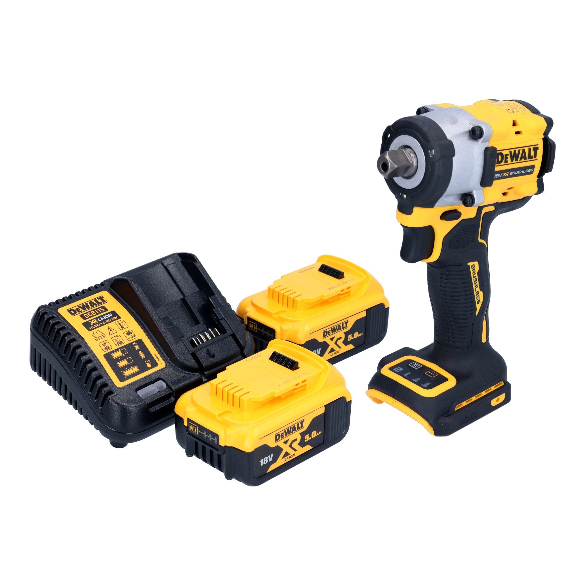 Der DeWalt DCF 922 N Akku Schlagschrauber ist ein leistungsstarker 4-Stufen-Schlagschrauber der neuesten Generation, der durch sein geringes Gewicht und seine extrem kompakten Abmessungen besticht. Dank der innovativen bürstenlosen Motor-Technologie bietet er eine längere Laufzeit pro Akku-Ladung und eine höhere Lebensdauer. Die Dreh- und Schlagzahl sowie die Drehmomentstärke lassen sich über den feindosierbaren Gasgeberschalter in zwei Stufen elektronisch regulieren, was maximale Kontrolle bei allen Anwendungen ermöglicht. Zusätzlich verfügt der Schlagschrauber über zwei elektronische Kontrollstufen für den sicheren Einsatz in speziellen Situationen. Kontrollstufe 1 stoppt den Rechtslauf, sobald die Schraube Materialkontakt hat, und reguliert die Dreh- und Schlagzahl, um ein unbeabsichtigtes Überdrehen der Schraube oder eine Beschädigung des Materials zu verhindern. Kontrollstufe 2 verhindert im Rechtslauf ein unbeabsichtigtes Überdrehen der Schraube durch eine 1,5-sekündige Unterbrechung des Schraubprozesses und stoppt im Linkslauf den Schraubprozess, sobald die Schraube mit der Hand sicher herausgedreht werden kann. Все vier Stufen sind schnell und sicher über einen Schalter elektronisch einstellbar. Mit einem hohen Anzugsmoment von über 400 Nm und einem Lösemoment von über 600 Nm ist der DCF 922 N optimal für schwerste Schraubarbeiten geeignet. Die Sicherheitselektronik sorgt für einen problemlosen Langzeiteinsatz, indem sie die Akku-Temperatur, Stromentnahme und den Entladeschutz permanent überwacht. Das hochwertige und robuste Aluminium-Schlagwerkgehäuse ermöglicht einen optimalen Wärmeaustausch und erhöht somit die Lebensdauer des Geräts. Die robuste ½“ Außenvierkant-Aufnahme mit Kugelrastung gewährleistet einen sehr sicheren Sitz der Einsatzwerkzeuge. Dank der extrem kompakten und leichten Bauweise sowie der ergonomisch gummierten Griffbereiche ist der Schlagschrauber auch bei sehr eingeschränkten Platzverhältnissen problemlos einsetzbar. Ein Diodenring mit drei leistungsstarken, in ihrer Leuchtintensität individuell einstellbaren LEDs sorgt für optimale Sichtverhältnisse am Arbeitsplatz. Zudem ermöglicht der robuste Metall-Gürtelhaken einen problemlosen Einsatz. Der DeWalt DCF 922 N ist mit allen 18 Volt XR oder XR Flexvolt Akkus kompatibel (nicht im Lieferumfang enthalten) und bietet somit maximale Flexibilität und Leistung für anspruchsvolle Schraubarbeiten.