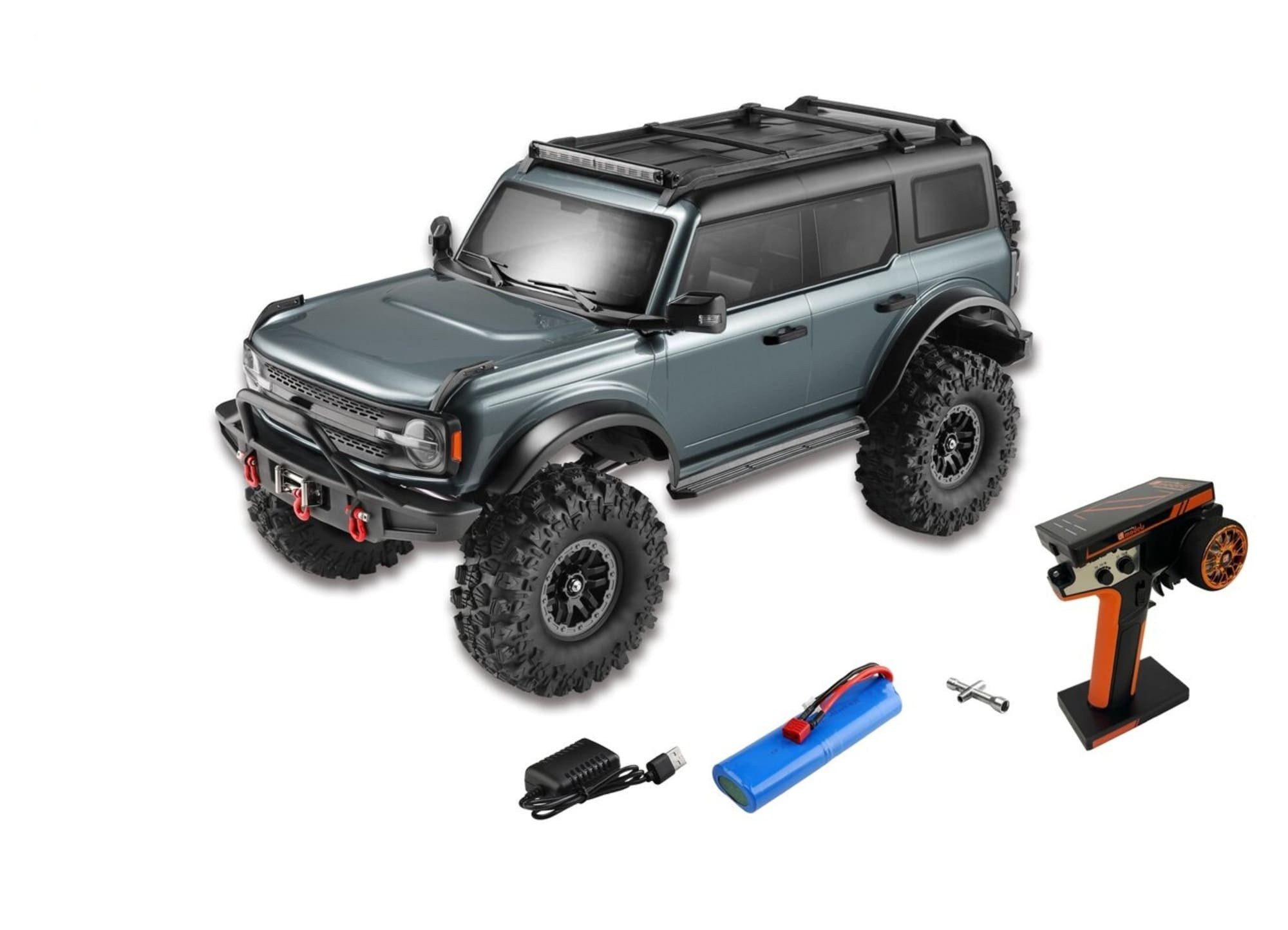 · Elektrische Seilwinde: Kann direkt über die Fernsteuerung betätigt werden - ideal für zusätzliche Funktionalität im Gelände.
