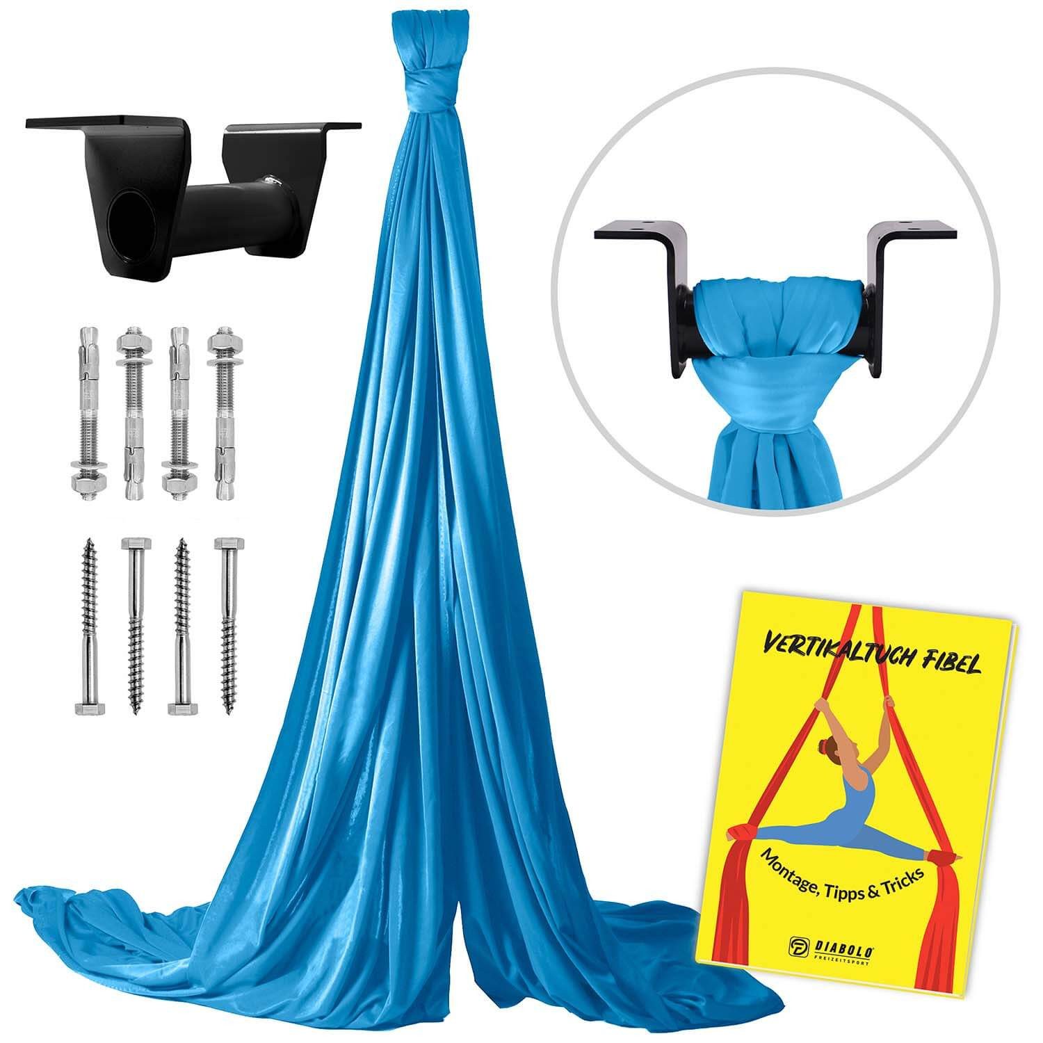 Schwinge dich mit diesem Aerial Silk Tuch in die Lüfte, habe Spaß, fordere deinen ganzen Körper und deine Sinne! Übe deine Luftakrobatik auch Zuhause, denn mit diesem Vertikaltuch kannst du dich optimal einwickeln, drehen, schwingen und einhängen sowie auffangen lassen. Das Vertikaltuch ist hochwertig verarbeitet und eignet sich sowohl für Einsteiger als auch für fortgeschrittene Akrobaten. Die leistungsstarken Eigenschaften des Tuches sorgen zudem für eine sichere und lange Nutzungsdauer. Für die ersten Versuche in der Luft empfehlen wir dir eine Sicherungsperson an deiner Seite zu haben und eine Matte zur Sicherung am Boden auszulegen. Angenehme Haptik Durch die besonders griffige Haptik eignet sich das Vertikaltuch sowohl für Einsteiger als auch für Profis. Du benötigst nur einen geringen Kraftaufwand und auch Rutschen und "Stürze" werden durch das Tuch viel leichter kontrollierbar. Der Stoff ist ca. 160cm breit und besteht aus speziell behandeltem Polyesterstoff. Dadurch kann die Längsdehnung so gering wie möglich gehalten werden - hervorragende Eigenschaften für anspruchsvolle Luftakrobaten! Einfache Pflege Möchtest du dein Vertikaltuch waschen? Bitte verwende eine schonende Handwäsche mit bis zu 30° für dein Tuch! Ve rwende bitte keinen Trockner! Der Stoff könnte andernfalls zu sehr beansprucht werden. Lagere dein Vertikaltuch stets trocken und UV-frei. Lange Einsetzbarkeit Dein Tuch darf maximal 3 Jahre bzw. 300 Einsatzstunden für die Luftakrobatik verwendet werden. Der zertifizierte Stoff erfüllt alle internationalen Standards und entspricht alle Sicherheitsanforderungen. Benötigst du ein Zertifikat über die Messung der Zugkraft? Gern senden wir dir dieses auf Anfrage zu! Das Vertikaltuch sollte bei der Befestigung immer doppelt genommen werden, daher eignet sich das 6m Tuch für eine Deckenhöhe von ca. 3m, das 8m lange Vertikaltuch für eine Deckenhöhe von ca. 4m. Впередe Informationen zur richtigen Tuchlänge findest du im Text "Wie finde ich das passende Vertikaltuch für mich". Die richtige Befestigung für das Plus an Sicherheit Bei der Verwendung des Vertikaltuches solltest du immer darauf achten, es an einer speziellen Befestigung zu montieren, zum Beispiel an einer speziellen Triangel- oder Deckenaufhängung. Nur so kannst du das Maximum an Sicherheit erreichen und die Belastung des Tuches verringern. Prüfe hierfür vorab die Tragfähigkeit deiner Decke, Balken, etc. Belastungsfakten: Arbeitslastbegrenzung: 100daN Bruchlastgrenze: 1350daN Wie finde ich das passende Vertikaltuch für mich? 1. Miss deine Deckenhöhe aus! - Verwende hierfür zum Beispiel einen Zollstock. In unserem Beispiel beträgt die Deckenhöhe 3m. 2. Wähle deine Tuchlänge aus! - Du entscheidest über die Tuchlänge in Abhängigkeit von deiner Deckenhöhe: Entweder soll das Tuch mit deinem Fußboden abschließen oder etwas auf dem Boden aufliegen.