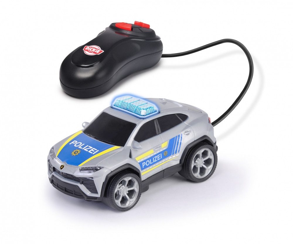 Dickie Toys - Polizeiauto Lamborghini Urus - 13 cm mit Kabelfernsteuerung, ferngesteuertes Polizei-Spielzeugauto mit Blaulicht & Batterien,für Kinder ab 3 Jahren