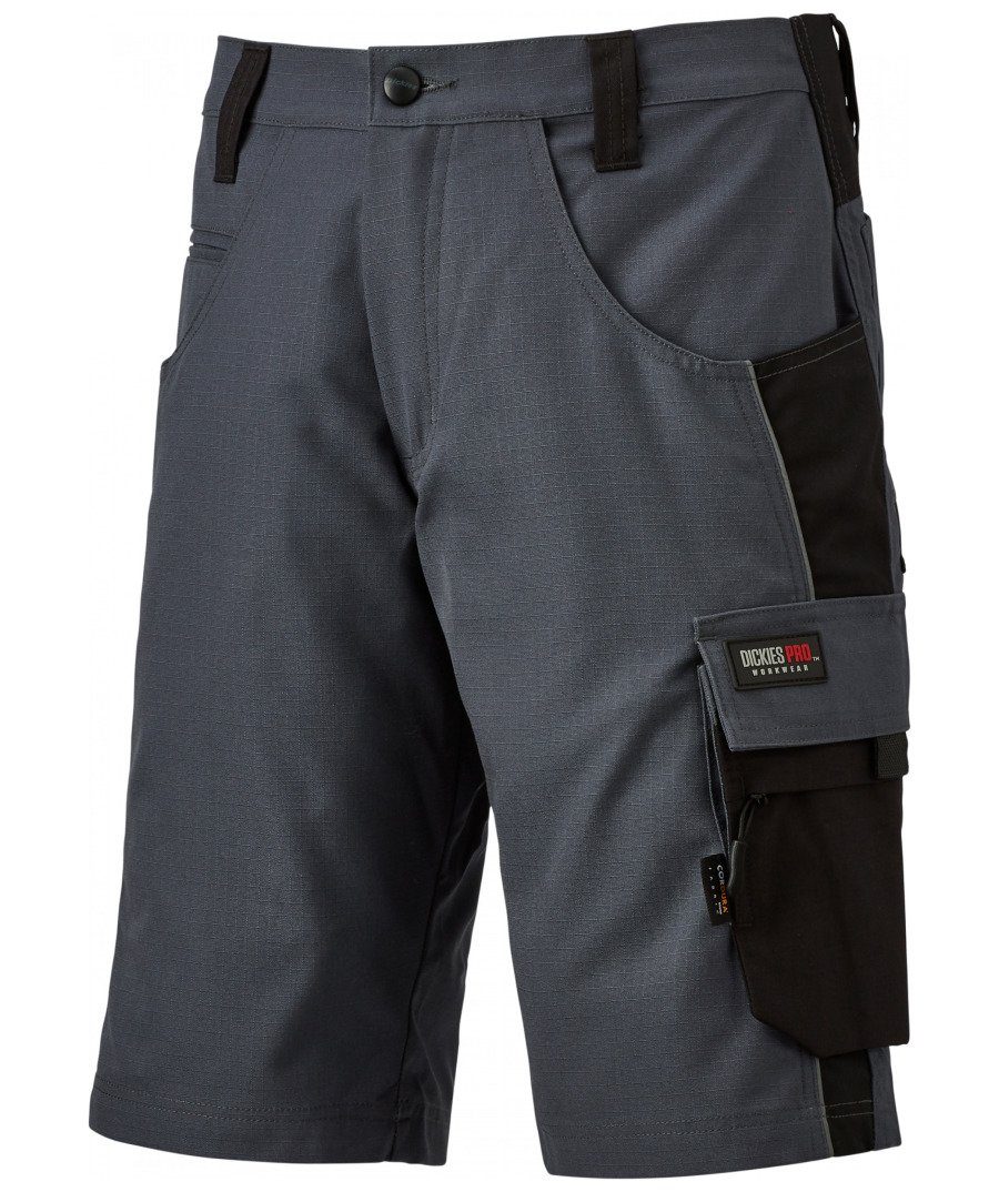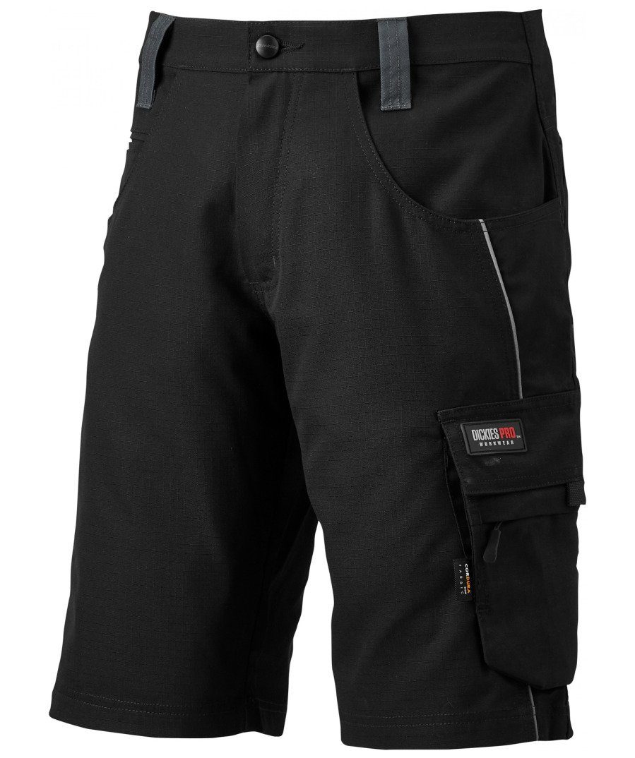Die Dickies Pro Short hat zahlreiche Features, mit Highlights wie zahlreichen Taschen, die alle mit einem robusten Cordura®-Gewebe verstärkt sind. Eine überlegene, moderne, ergonomische Passform durch den Stretch- Rücken Bund und Seitenteile bieten außergewöhnlichen Komfort und Bewegungsfreiheit. • • • Elastischer Bund und Seitenteile • • • Reflektierende Details • • • Ergonomische Passform. • • • 2 mit Cordura® verstärkte Gesäßtaschen. • • • Cargo-Tasche (mit versteckter Handytasche) verstärkt mit Cordura®. • • • Meterstab-Tasche mit Cordura® verstärkt. • • • • • • 65% Polyester, 35% Baumwolle Ripstop, 270gm²