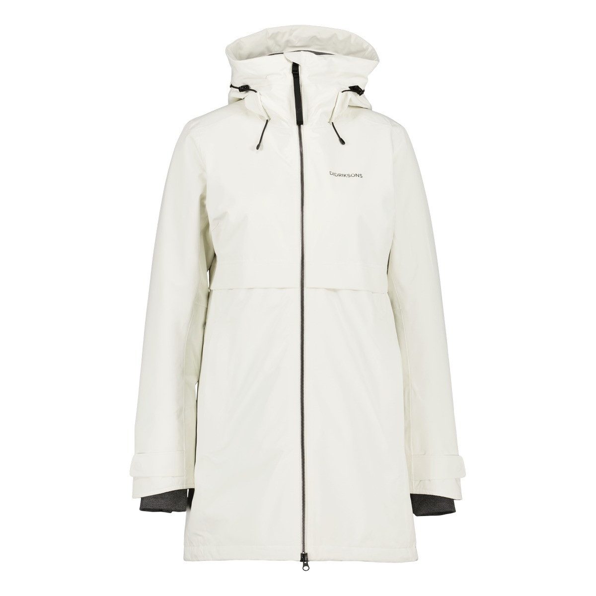 Didriksons leicht wattierter Parka Helle besticht durch den weichen Griff und ist wie gemacht für den Alltag. Normale Passform mit figurbetonter Silhouette. Dank versiegelter Nähte ist das atmungsaktive Modell zu 100 % wind- und wasserdicht. Die angeschnittene Kapuze und der hohe Kragen schützen hervorragend vor kaltem Wind.