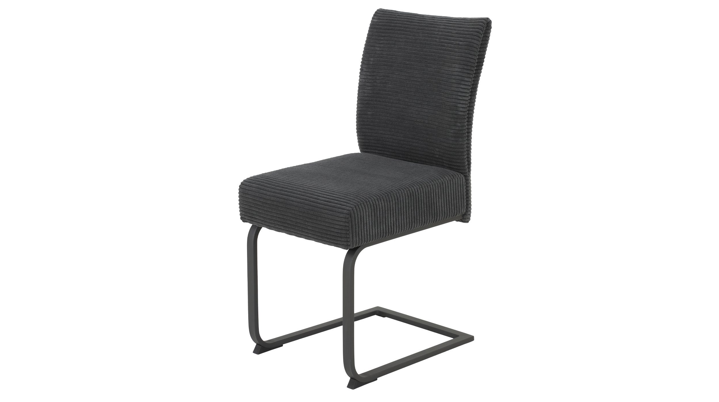 Unser Schwingstuhl OLESSA lädt Sie ein, sich hinzusetzen, zu entspannen und das Essen in vollen Zügen zu genießen. Der kultige Cordbezug feiert seine Rückkehr in Ihre vier Wände und das aus guten Gründen. Dieser Bezug mit extra breiten Rippen, in der Farbe Anthrazit bringt eine außergewöhnliche Optik in Ihr Esszimmer und fühlt sich kuschlig weich auf der Haut an. Das Metallgestell aus Flachrohr mit Pulverbeschichtung in Anthrazit sorgt dabei für eine robuste Basis. Die bequeme Federkernpolsterung ermöglicht ein angenehmes Sitzen - selbst bei längeren Mahlzeiten sitzen Sie wie auf Wolken. Durch die schwingende Eigenschaft des Stuhles wird dieses Gefühl nochmal verstärkt. Um den Stuhl leicht zu verrücken, wurde am Rücken ein Griff angebracht. So ist die Rückenlehne nicht nur ergonomisch geformt, sondern ermöglicht eine besonders leichte Handhabung. Schaffen Sie mit unserem Freischwinger OLESSA das perfekte Ambiente für gemeinsame Mahlzeiten und unvergessliche Momente im Kreise Ihrer Liebsten.