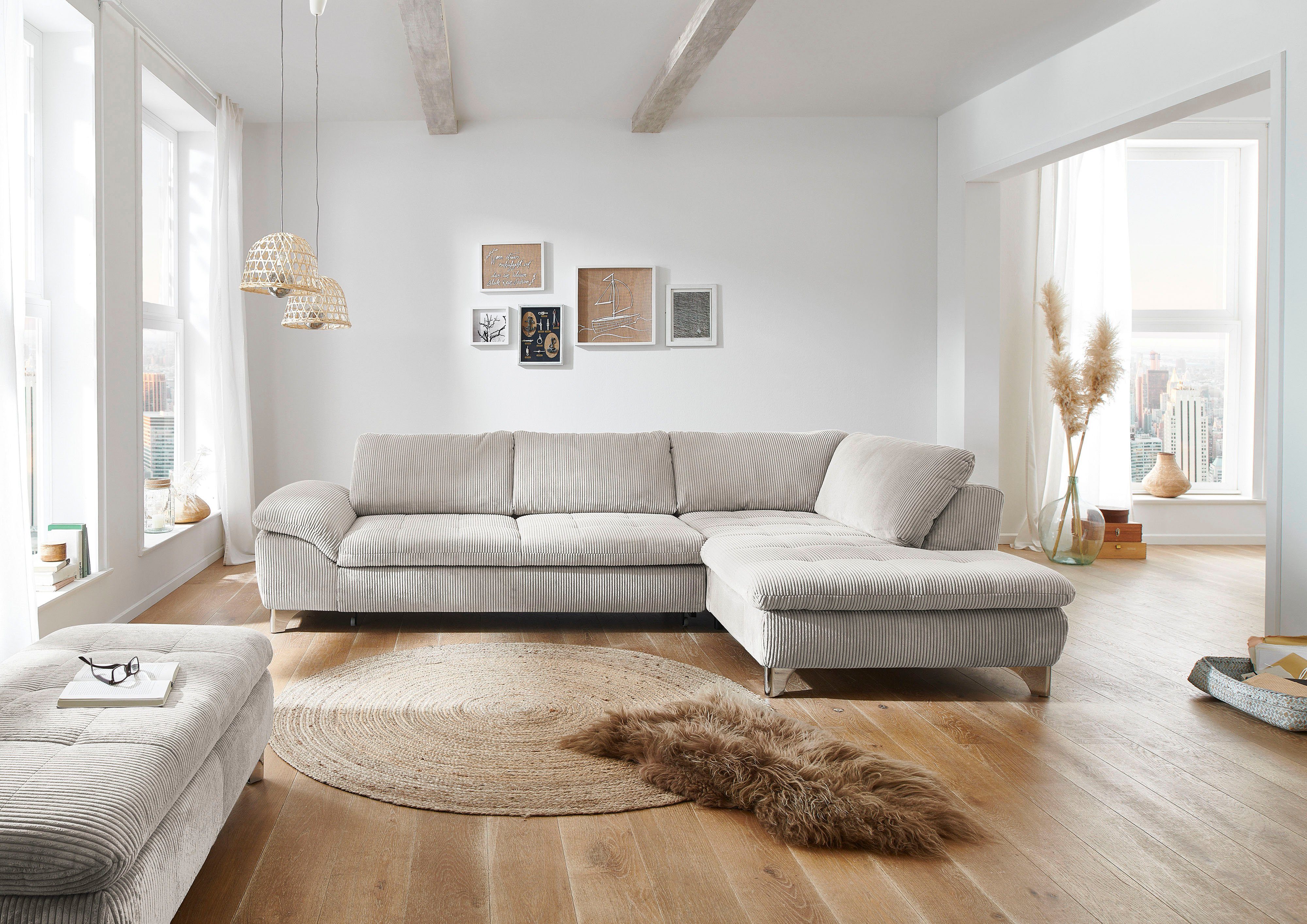 Mit diesem einladenden Ecksofa »MP-IN14007 L-Form« von Die PlanBar kannst du dich gemeinsam mit deiner Familie oder Freunden zurücklehnen und entspannen. Von vorne betrachtet ist die Recamiere nach rechts ausgerichtet. Die maximale Belastbarkeit pro Sitzplatz liegt bei einem Gewicht von 120 Kilogramm. Aus Metall gefertigt sind die Füße besonders widerstandsfähig und langlebig. Aus Liebe zum Detail wurde dieses Modell von Hand angefertigt. Der Hersteller gewährt dir eine Garantie von 2 Jahren.