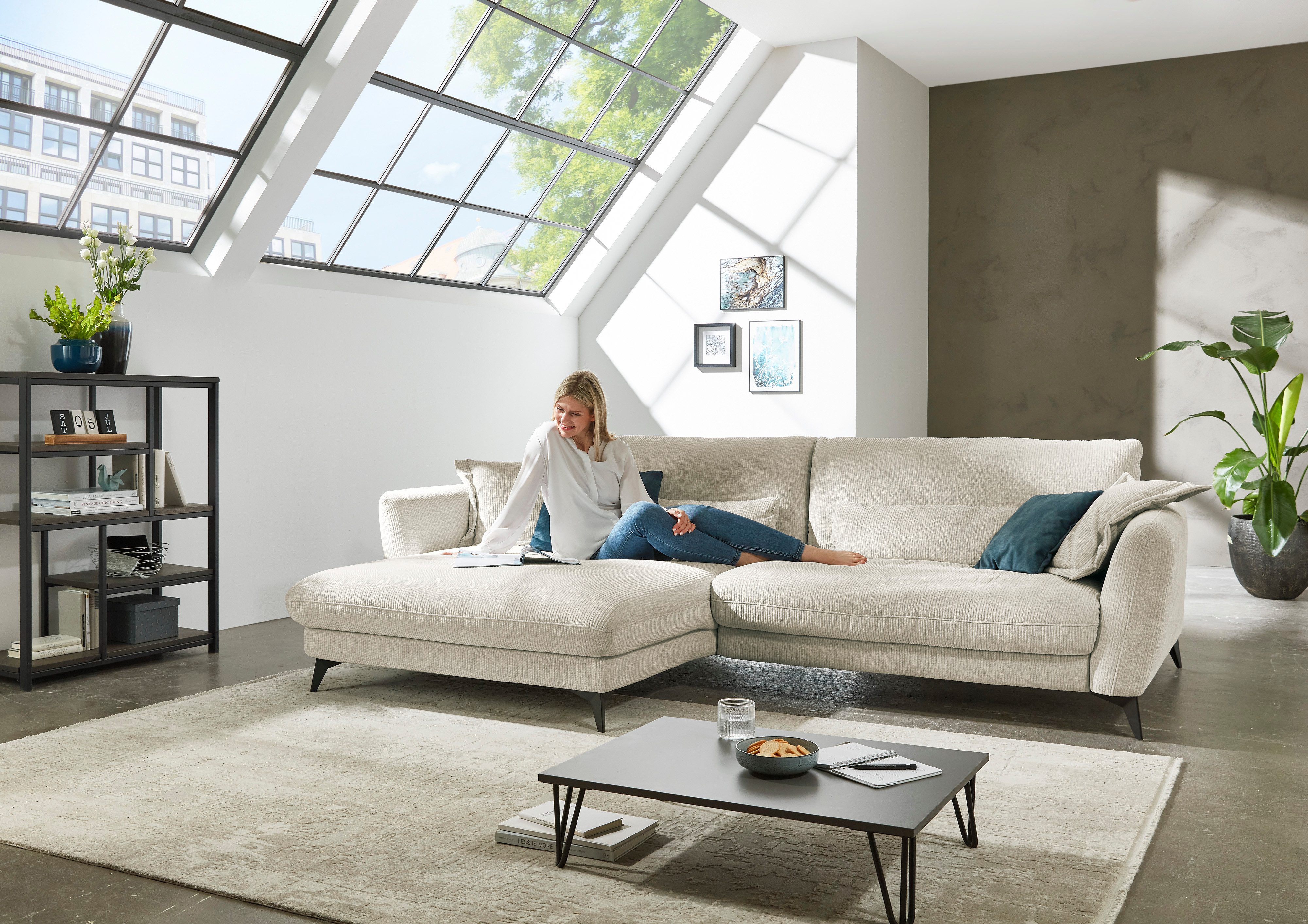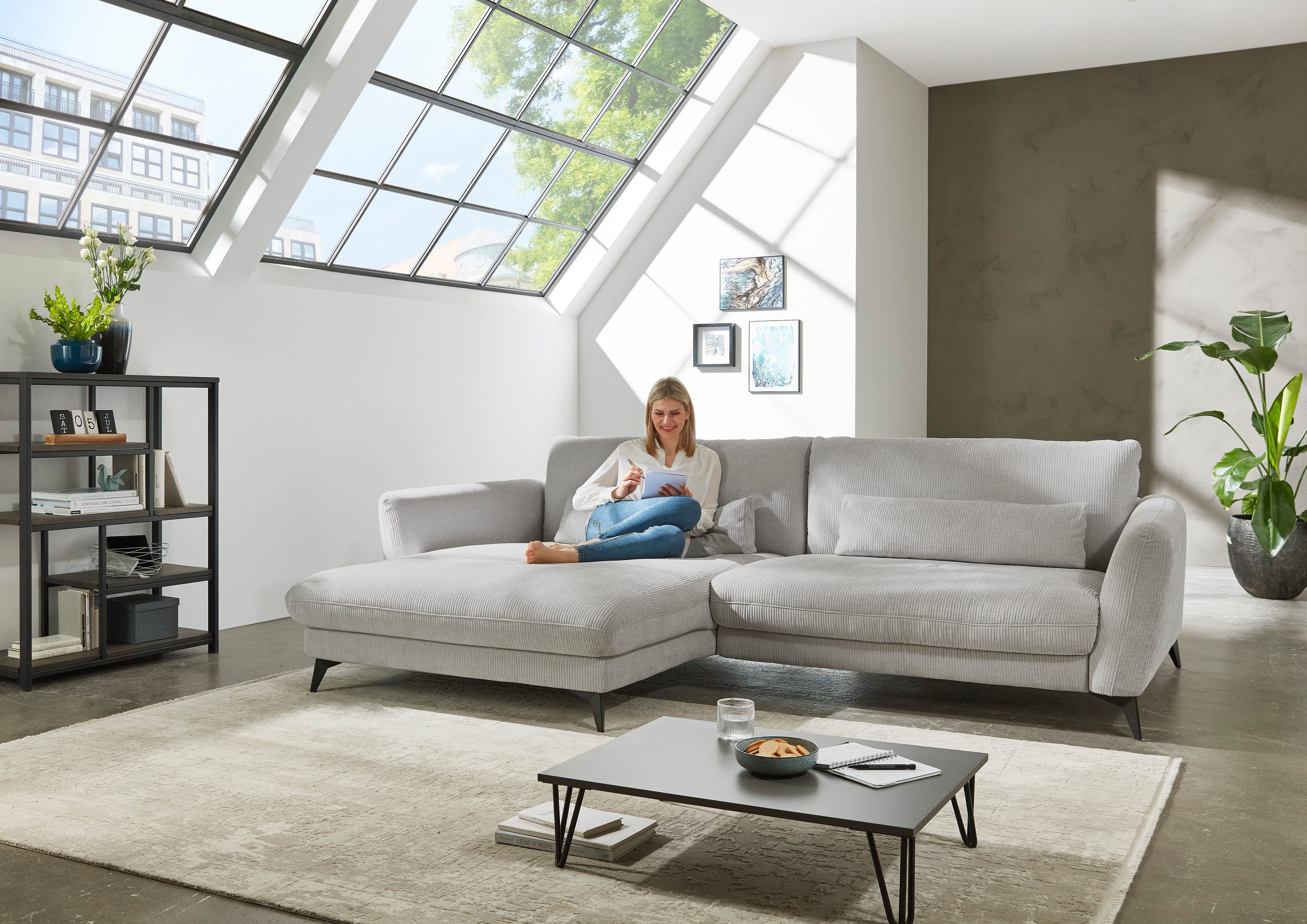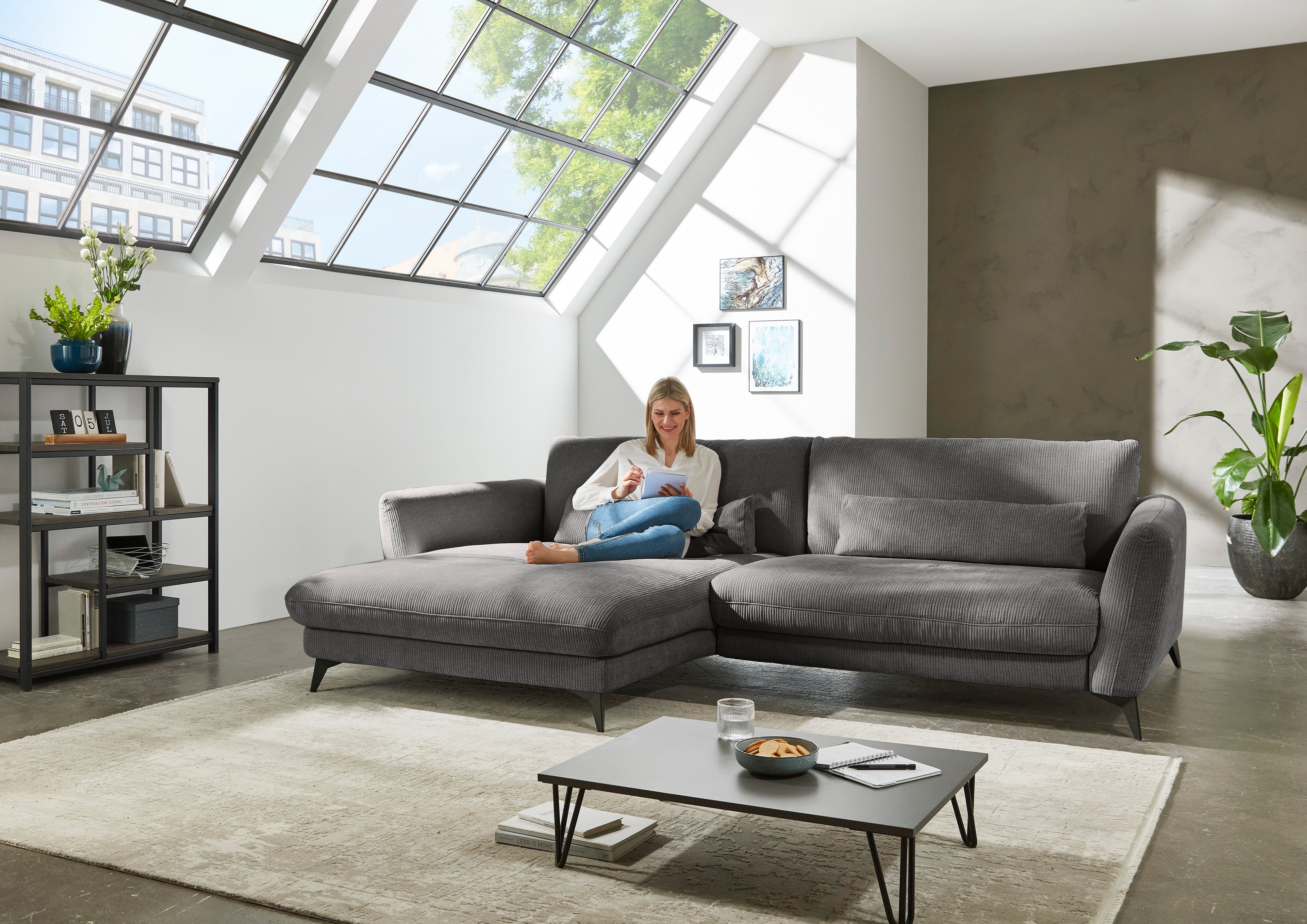 Dank der Kaltschaumpolsterung punktet dieses Ecksofa »MP-IN23149 L-Form« von Die PlanBar mit hohem Sitzkomfort, guter Luftzirkulation und Feuchtigkeitsregulation. Von vorne betrachtet ist die Ottomane nach links ausgerichtet. Bei etwa 120 Kilogramm liegt die maximale Belastbarkeit pro Sitzplatz. Aus Metall gefertigt sind die schwarzen Füße besonders widerstandsfähig und langlebig. Dieses Modell wurde von Hand gefertigt. Du hast eine Herstellergarantie von 2 Jahren.