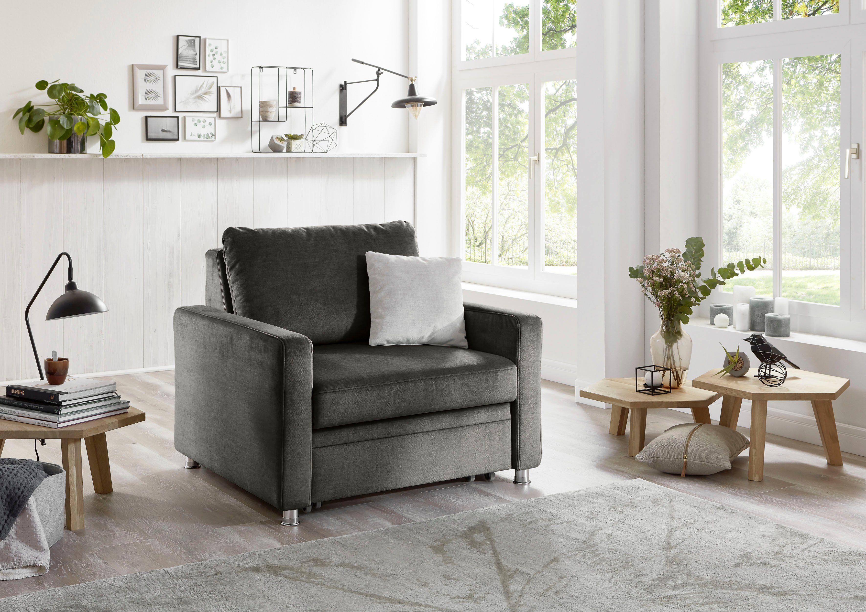 Eine elastische und formbeständige Sitzoberfläche bekommst du mit diesem Schlafsofa »MP-PD19021« von Die PlanBar, das mit langlebiger Federkern-Polsterung ausgestattet ist. Zudem kann das Möbelstück ein separates Gästebett ersetzen und somit Platz einsparen, denn es ist mit einer ausziehbaren Liegefläche versehen. Das Produkt ist manuell verstellbar und lässt sich so mit wenigen Handgriffen in die gewünschte Position bringen. Belastbar ist ein Sitzplatz bis zu 110 Kilogramm. Die schwarzen Füße aus Metall benötigen nahezu keine Pflege, denn Rückstände, Schmutz oder Staub lassen sich ohne großen Aufwand mit einem feuchten Tuch abwischen. Aus Liebe zum Detail wurde dieses Modell von Hand angefertigt.