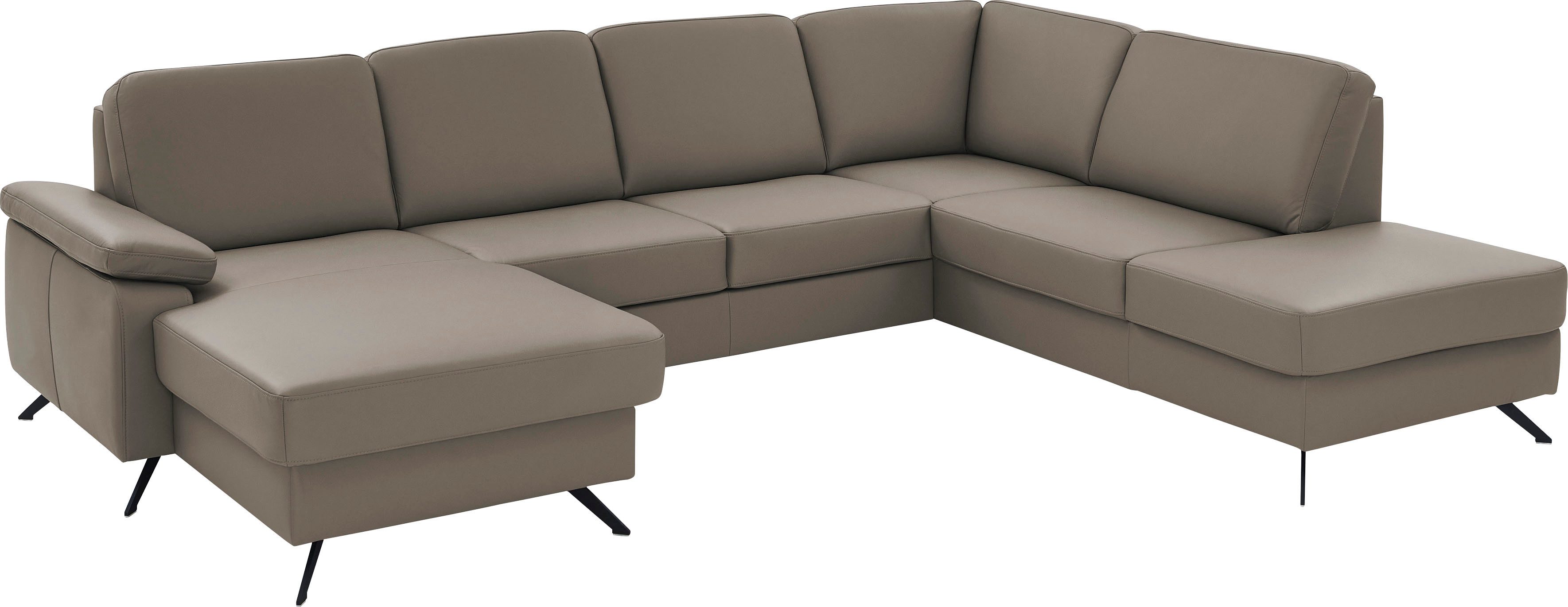 Dank der Kaltschaumpolsterung punktet diese Wohnlandschaft »PN-EM15047 U-Form, ohne Kopfstützen« von Die PlanBar mit hohem Sitzkomfort, guter Luftzirkulation und Feuchtigkeitsregulation. Bei der Wohnlandschaft befindet sich die Ottomane, von vorne betrachtet, links. Bei etwa 120 Kilogramm liegt die maximale Belastbarkeit pro Sitzplatz. Aus Metall gefertigt sind die schwarzen Füße besonders widerstandsfähig und langlebig. Aus Liebe zum Detail wurde dieses Modell von Hand angefertigt. Du hast eine Herstellergarantie von 2 Jahren.