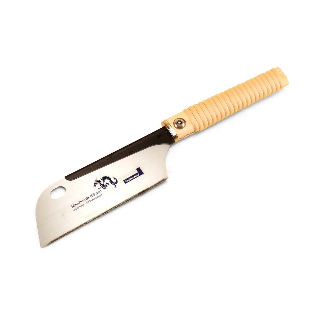 Die Japansäge ist unsere unangefochtene Nummer 1! Diese Ausführung sägt wie die meisten Japansägen auf Zug. Der Bastgriff bietet viel Halt und ist lang genug ,um auch mal die zweite Hand zur Hilfe zu nehmen. Die Säge kommt mit einem Stahlrücken daher, der ein noch dünneres Sägeblatt ermöglicht. Der benötigte Kraftaufwand wird dadurch noch einmal verringert.