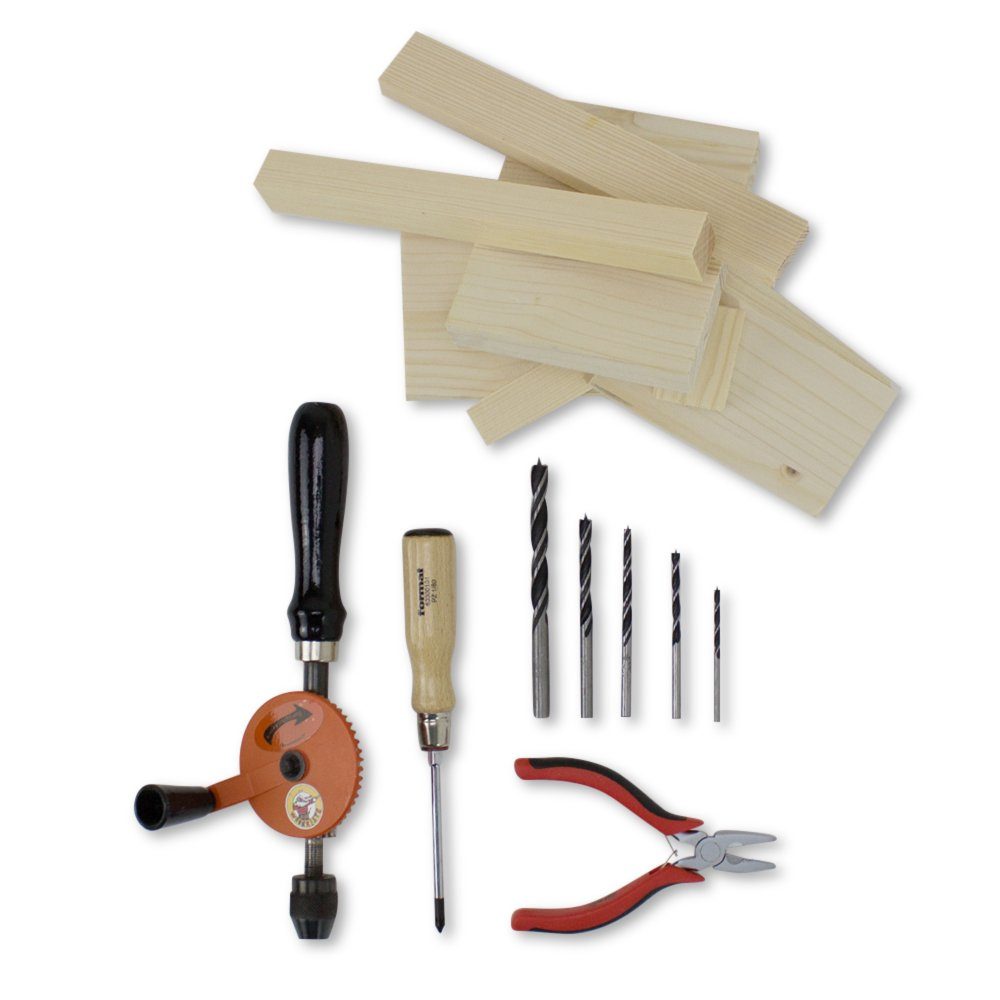 Mit den Sets "Kleiner Tischler" ("Kleiner Schreiner") könnt Ihr richtig mit Holz arbeiten. Neben echtem und hochwertigem Werkzeug in Kindergröße enthält das Set auch gleich das passende Holz für erste tolle Laubsägearbeiten.