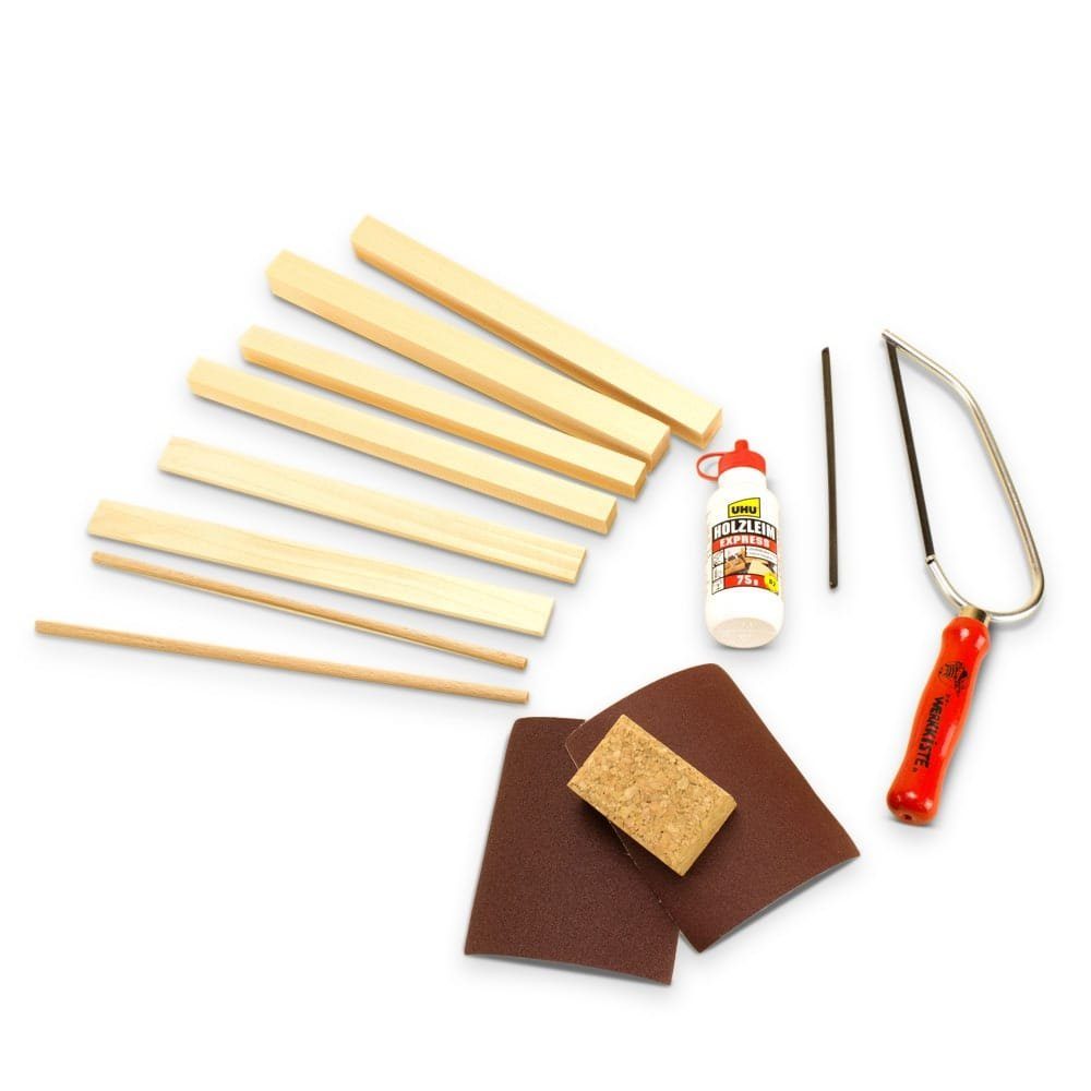 Mit dem PUK-Sägeset lassen sich erste Erfahrungen im Sägen von Hölzern machen. Gerade für Kinder, die noch nicht so viel mit Holz gearbeitet haben, ist dieses Set geeignet.