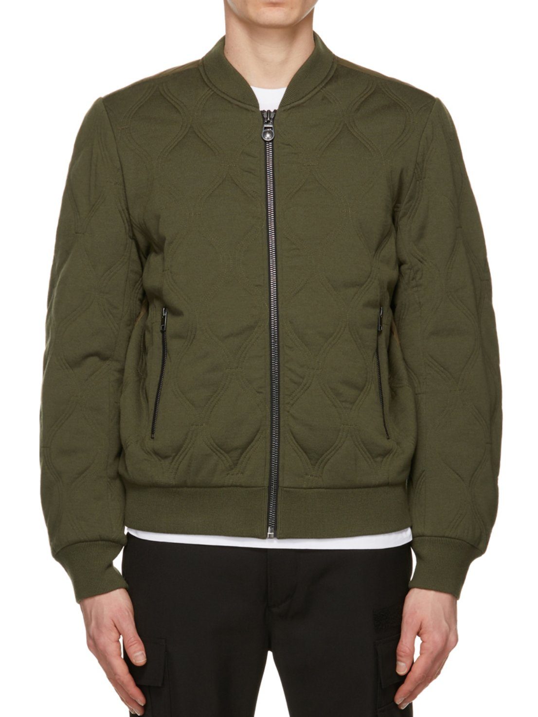 Olivgrüne Bomberjacke aus Wolle in regulärer Passform. Stepp-Optik und Reißverschluss. Zwei Außentaschen und Nylon-Kontrast auf der Rückseite. 100% Wolle. Kontrast: 100% Polyamid-Nylon. Gefüttert. Das Model ist 188 cm und trägt Размер L.
