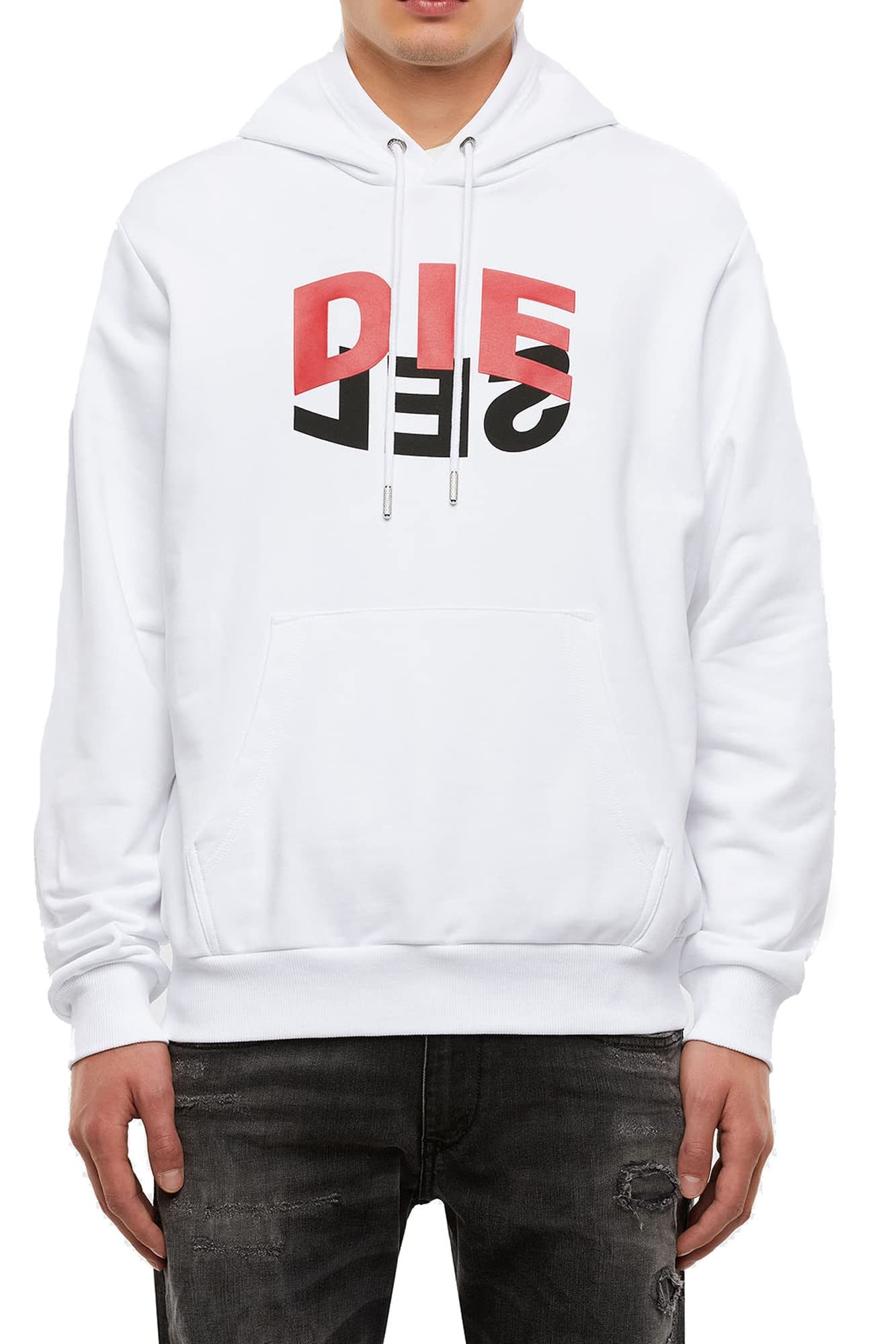 Kapuzen-Sweatshirt aus Loopback-Baumwolle mit entspannter Silhouette, klassischen Stretch-Rippbündchen und Kordelzugenden aus Metall. Die Brust ist mit dem Diesellogo versehen.