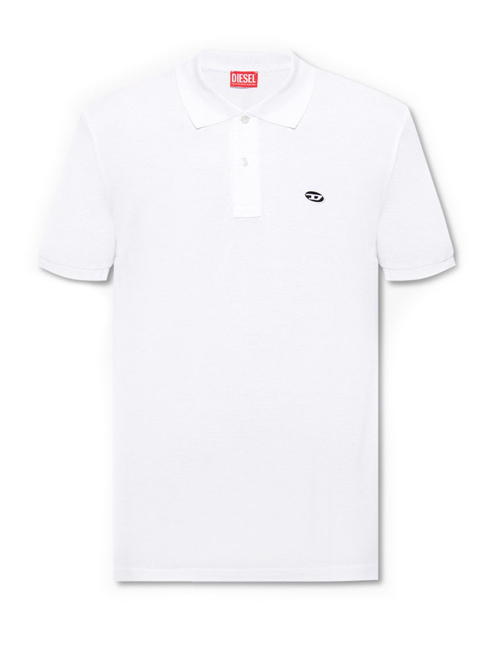Schmal geschnittenes Poloshirt aus Bio-Baumwolle in Weiß. Mit Knopfleiste und ovalem Diesel Logo Aufnäher auf der linken Brust. 100% Baumwolle.