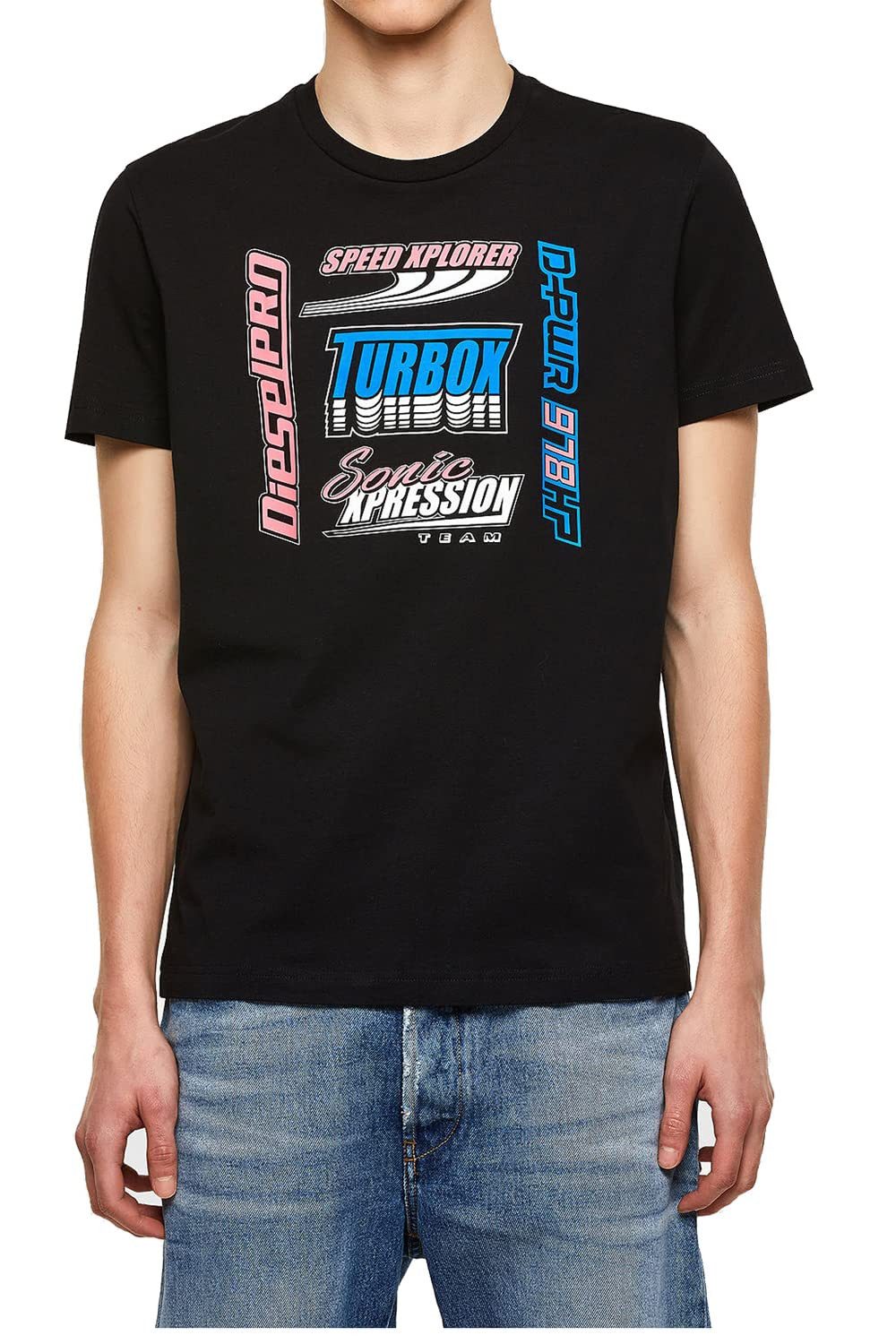 Slim Fit T-Shirt mit Rundhalsausschnitt aus leichtem Baumwolljersey. Es ist mit gummierten Slogans und Logo-Motiven auf der Vorderseite bedruckt.