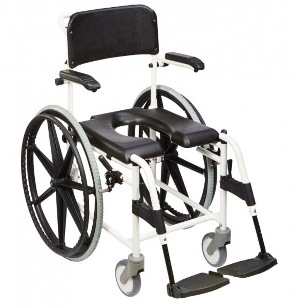 Описание товара (мы ещё работаем над переводом, извините за неудобство): Duschtoilettenstuhl Levina 400-2 Der Duschtoilettenstuhl Levina 400-2 ist eine innovative Lösung für die tägliche Hygiene und Mobilität. Mit seiner ergonomischen Bauweise und durchdachten Features bietet er sowohl Komfort als auch Sicherheit für Menschen mit eingeschränkter Beweglichkeit. Dieser Stuhl überzeugt durch einen stabilen, pulverbeschichteten Aluminiumrahmen, der nicht nur robust, sondern auch leicht ist. Mit einem Gewicht von nur wenigen Kilogramm lässt sich der Stuhl mühelos von Pflegekräften und Angehörigen handhaben. Die zwei 24-Zoll-Antriebsräder mit Greifreifen ermöglichen eine einfache Fortbewegung, sodass die versorgte Person mehr Unabhängigkeit genießen kann. Die Antriebsräder verbessern die Mobilität erheblich und machen die alltägliche Versorgung für beide Seiten einfacher und komfortabler. Der Levina 400-2 bietet zahlreiche Funktionen, die ihn zu einem idealen Begleiter im Alltag machen. Die gepolsterten Armlehnen und die ergonomisch geformte Rückenlehne sorgen für zusätzlichen Komfort, während die abschwenkbaren Beinstützen eine individuelle Anpassung ermöglichen. Das Fußbrett ist höhenverstellbar, sodass es auf die Bedürfnisse des Benutzers abgestimmt werden kann. Die zwei 5-Zoll-Schwenkrollen sorgen für Flexibilität und erleichtern das Manövrieren des Stuhls in engen Räumen. Mit der Feststellbremse können Sie den Stuhl sicher an Ort und Stelle fixieren, was für zusätzliche Sicherheit sorgt. Die Überfahrhöhe von 43,5 cm macht es einfach, den Stuhl über die Toilette zu positionieren. Zusammengefasst ist der Duschtoilettenstuhl Levina 400-2 eine herausragende Wahl für alle, die Wert auf Mobilität, Komfort und Sicherheit legen. Egal, ob für den Einsatz zu Hause oder in Pflegeeinrichtungen – dieser Stuhl erfüllt die höchsten Ansprüche und verbessert die Lebensqualität der Nutzer und deren Angehörigen erheblich.