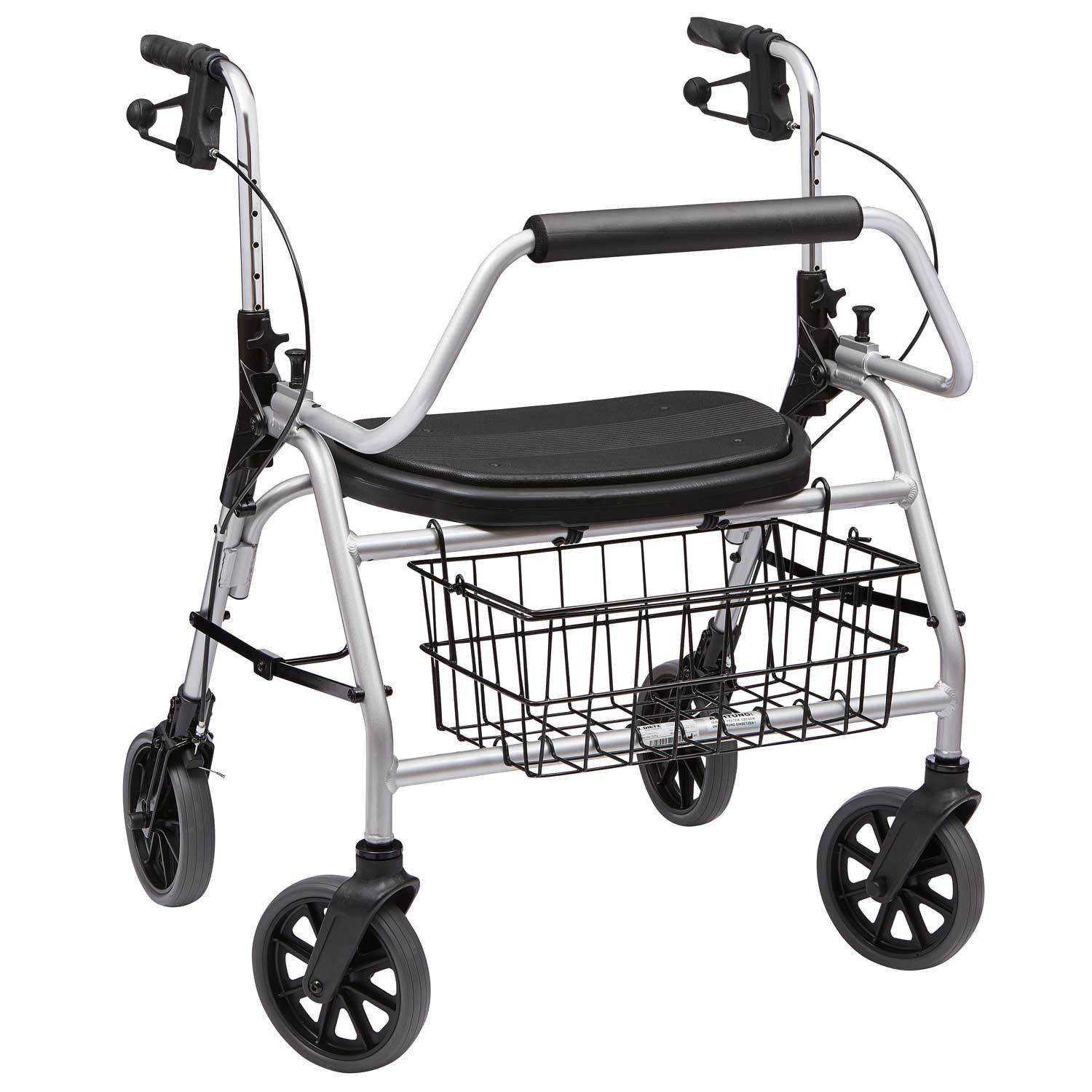 Die pannensicheren PU-Bereifungen bieten sicheren Halt und sorgen für ein komfortables Gehen auf verschiedenen Untergründen, ohne dass der Rollator ins Rutschen kommt. Ein abnehmbarer Rückenbügel sorgt für zusätzlichen Halt, kann jedoch bei Bedarf einfach entfernt werden. Der Rollator ist außerdem mit einem integrierten Klappmechanismus ausgestattet, der eine platzsparende Aufbewahrung und einen unkomplizierten Transport ermöglicht.