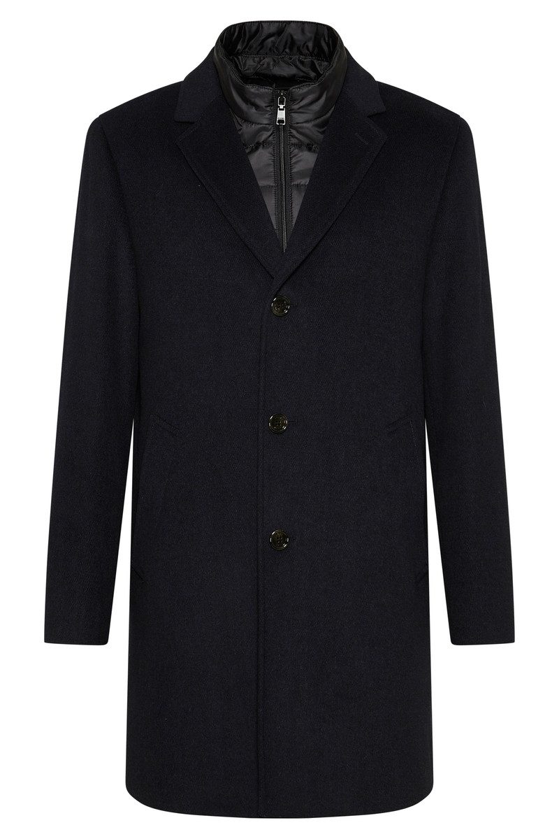Besonderes Highlight ist die herausnehmbare Inlay-Weste, die zusätzliche Wärme bietet und den Mantel besonders vielseitig macht. Ob klassisch über dem Anzug oder leger zur Jeans – der Mantel passt sich flexibel an.