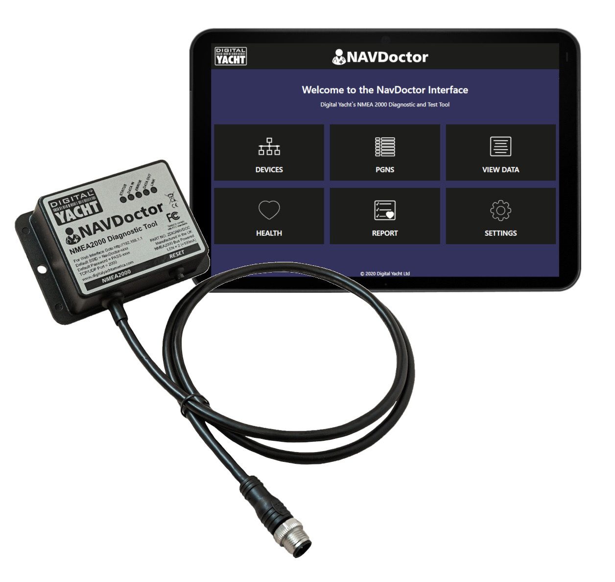NAVDoctor ist ein tragbares NMEA 2000 Netzwerk-Diagnose-Tool/Werkzeug. Es ermöglicht Ihnen eine schnelle Überprüfung und Diagnose des NMEA-2000-Netzwerks. Das Tool kombiniert die Funktionalität bestehender NMEA 2000-Anzeigeprogramme und Testgeräte in einer einzigen, kostengünstigen und einfachen Plug ‘n Play-Box.