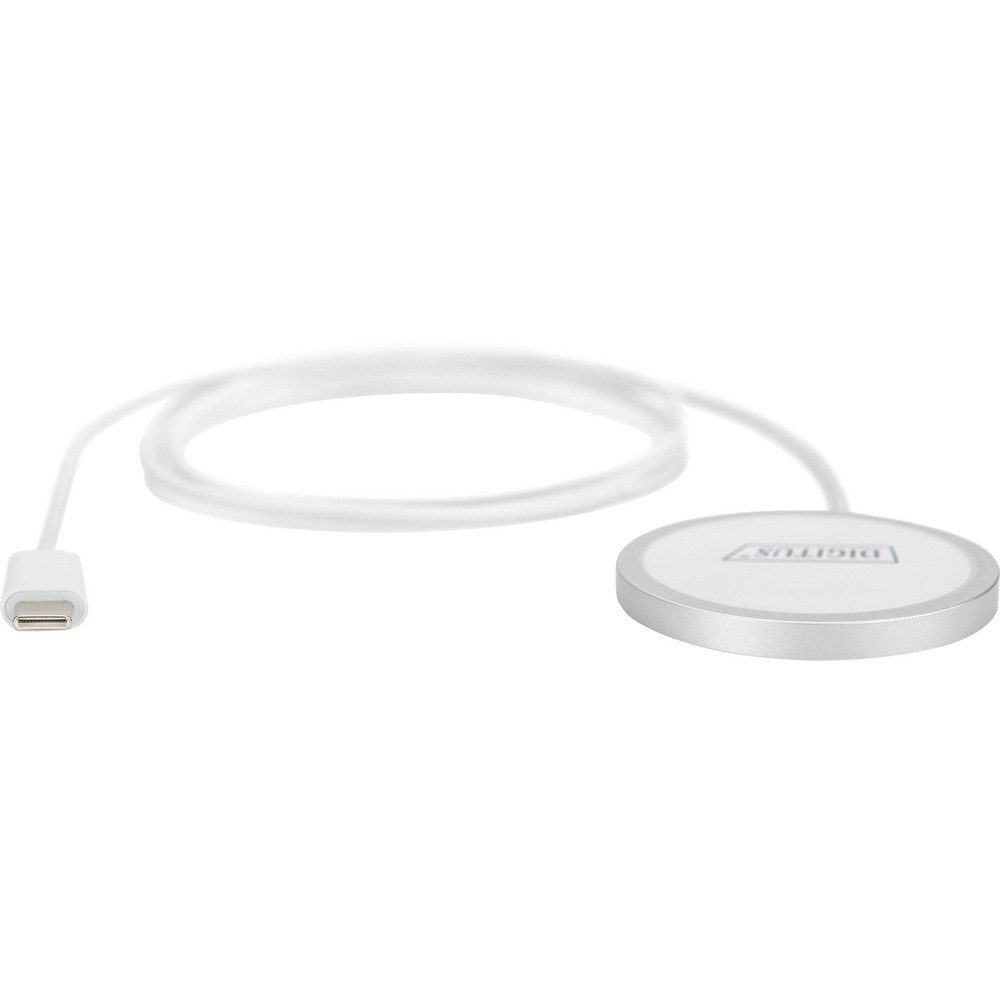 Das magnetische Ladepad von DIGITUS® hängt sich automatisch an die optimale Ladeposition des iPhones® an und stellt so ein effizientes laden sicher. Das Induktionsladegerät hat ein 1,0m langes USB-C Ladekabel integriert und funktioniert mit allen Apple MagSafe® kompatiblen Produkten