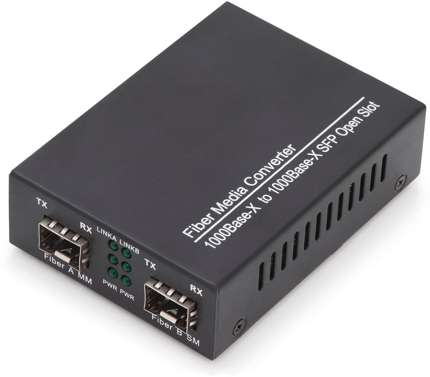 Lieferumfang | DIGITUS Gigabit Multimode/Singlemode Medienkonverter SFP, Schnellstartanleitung, Netzteil |