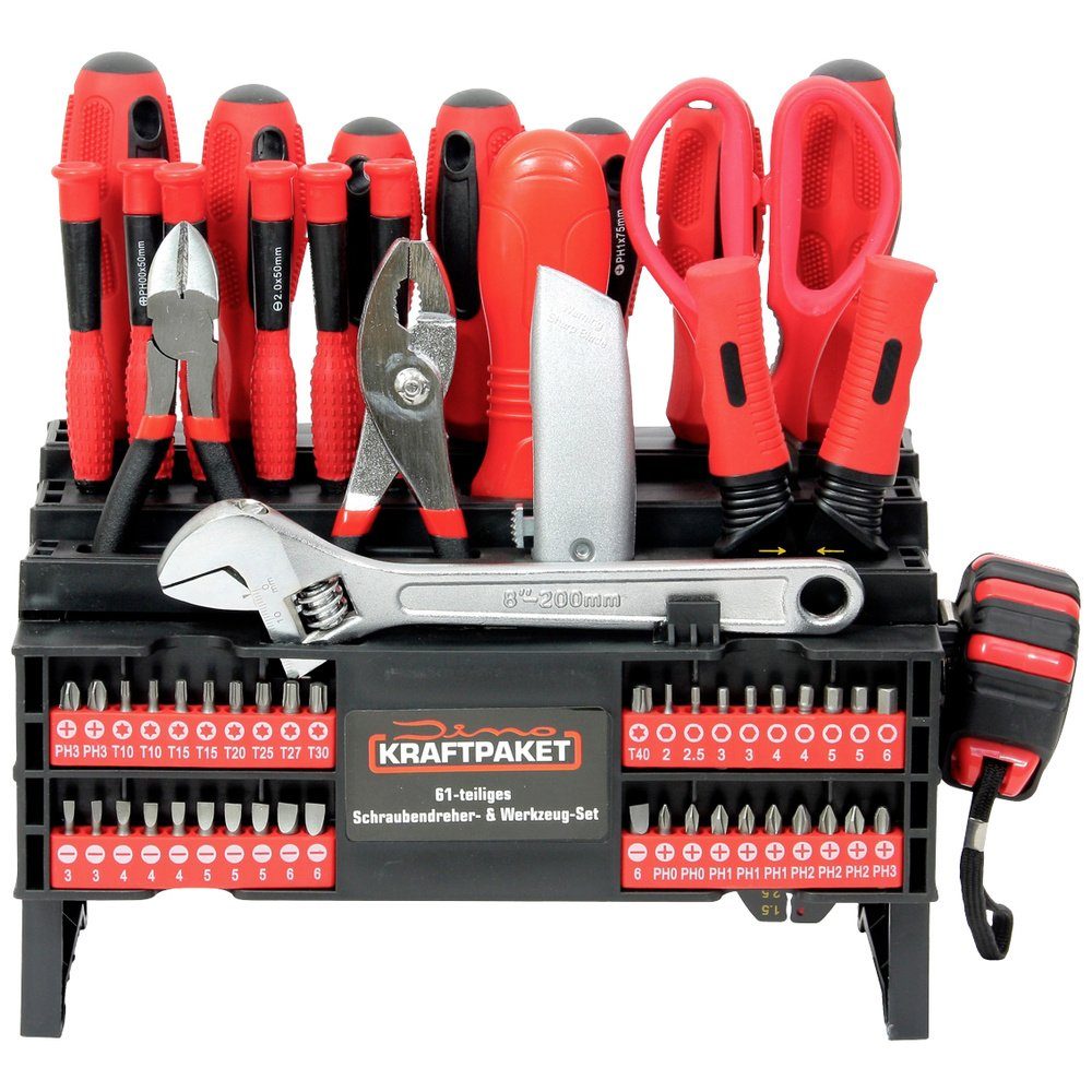 Für handwerkliche Tätigkeiten im Haushalt. Platzsparendes Werkzeugset für den Heimwerker zum Stellen und Hängen. Passt in schmale Haushaltsregale. Griffbereit stecken alle 61 Teile im kompakten Werkzeughalter, der auf kleinster Fläche aufgestellt werden kann