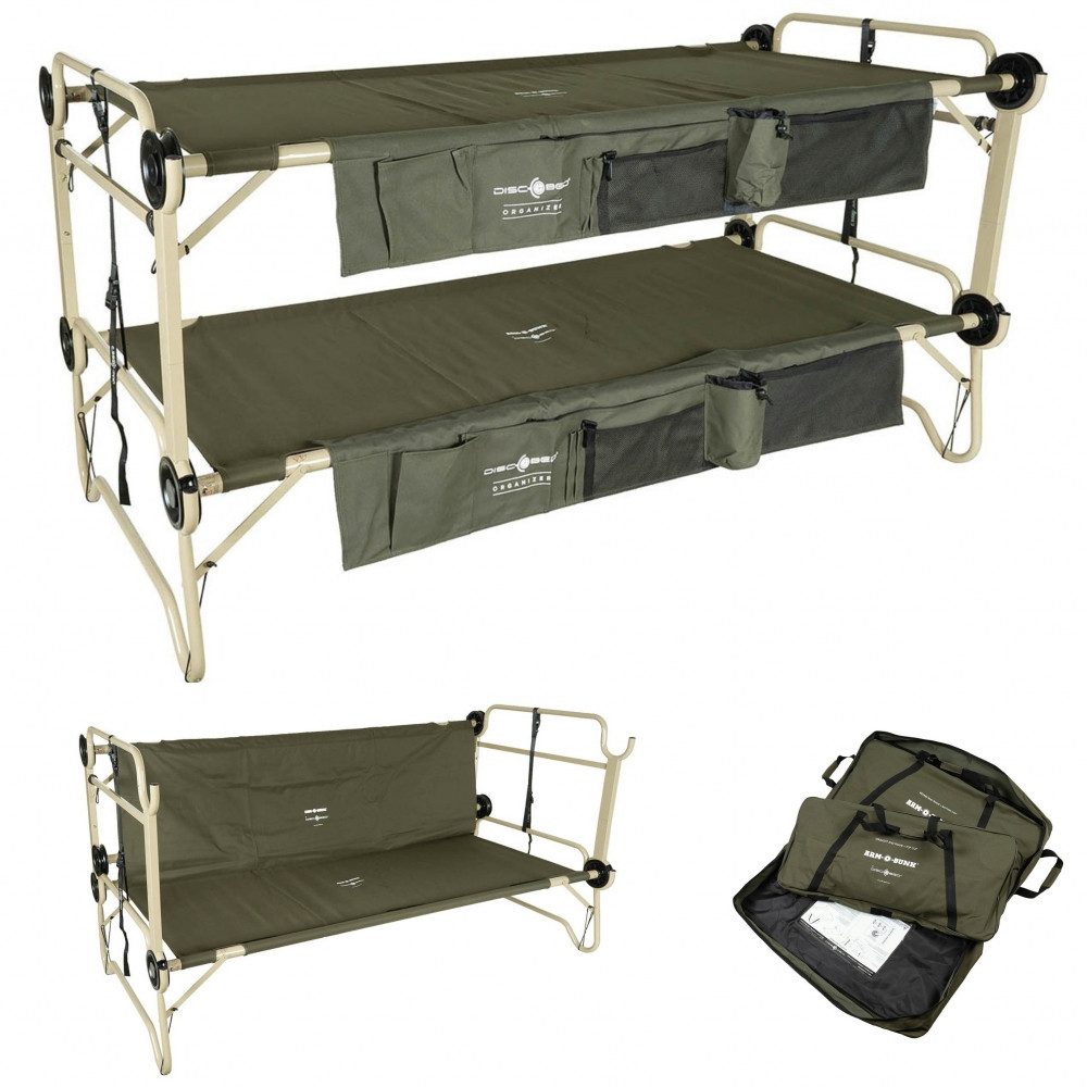 Ausstattung | Feldbett in Oliv Arm-O-Bunk von Disc-O-Bed 2 Betten & Seitentaschen inkl. Etagenbett oder Sitzbank Werkzeugfreie Montage |