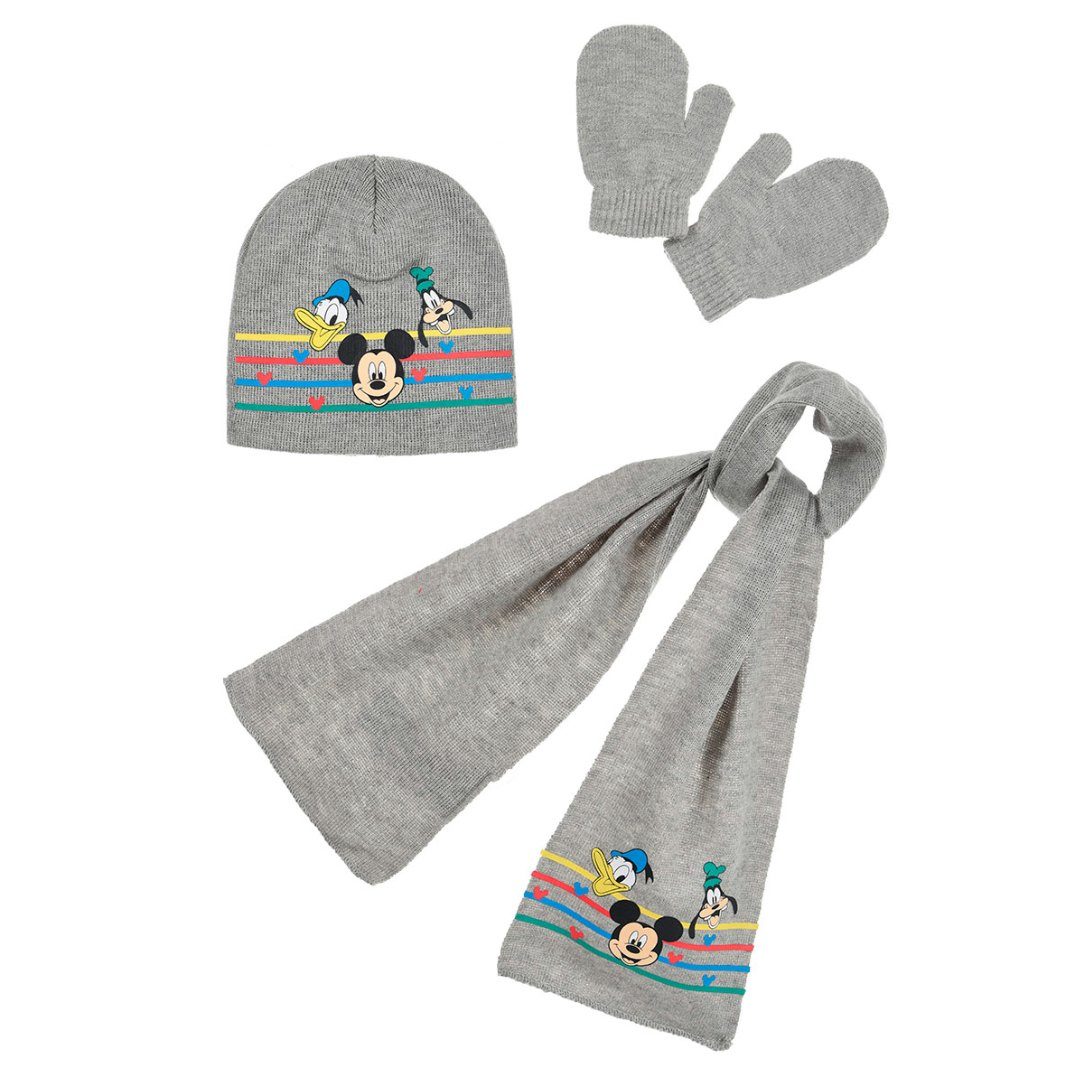 Unser süßes 3tlg. Disney Micky Maus Winter-Set ist das perfekte Accessoire für kalte Tage. Mit einer warmen Wintermütze, einem gemütlichen Schal und kuscheligen Handschuhen ist Ihr Kind bestens für die kalte Jahreszeit gerüstet. Das zauberhafte Motiv von Micky Maus, Donald Duck und Goofy lässt jedes Disney-Herz höher schlagen. Die Mütze ist aus weichem Material gefertigt und bietet Ihrem Kind optimalen Komfort und Wärme. Der Schal kann einfach um den Hals gebunden werden und sorgt für zusätzliche Wärme, während die Handschuhe aus einem weichen, elastischen Material bestehen, das die Hände Ihres Kindes auch an kalten Tagen warm hält. Material: Blau: 100% Polyacryl Grau: 61% Polyacryl 39% Polyester Größe: Mütze: 48/50 Handschuhe: L/B 13cm / 10cm (bis ca. 4 Jahre) Schal: L 110 cm - B 14 cm
