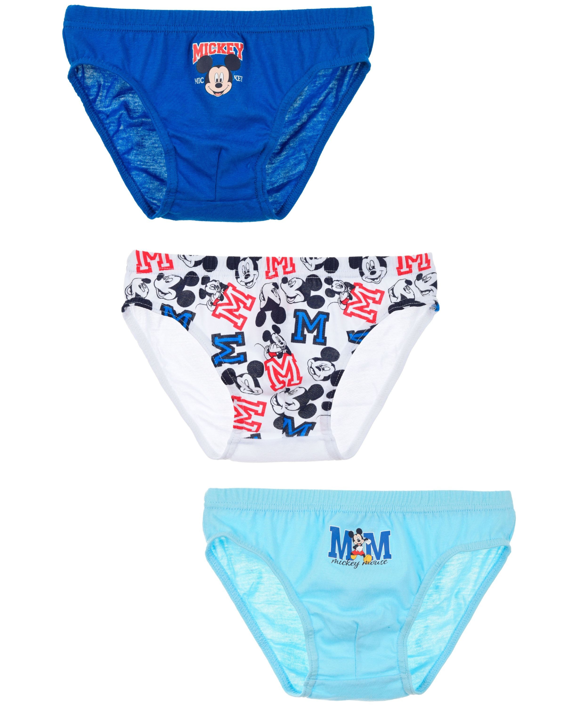 Das Set enthält drei verschieden designte Slips in Blau- und Weißtönen mit lustigen Mickey-Prints. Weicher Bund und elastische Abschlüsse sorgen für perfekte Passform und Komfort.