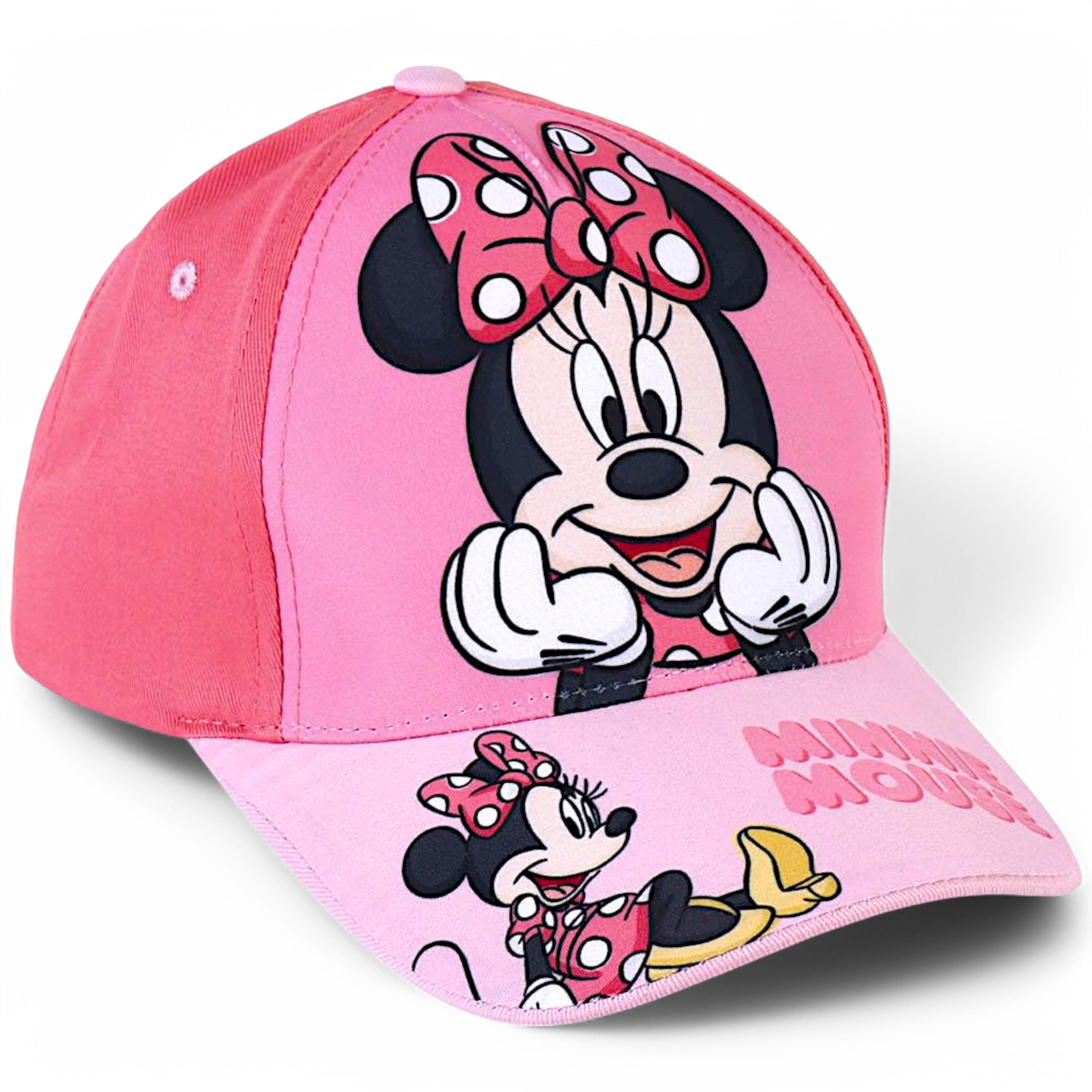 Die leuchtend pinke Kappe zeigt Minnie mit ihrer roten Schleife und einem verspielten Print auf dem Schirm – ein echter Hingucker für kleine Fashionistas.