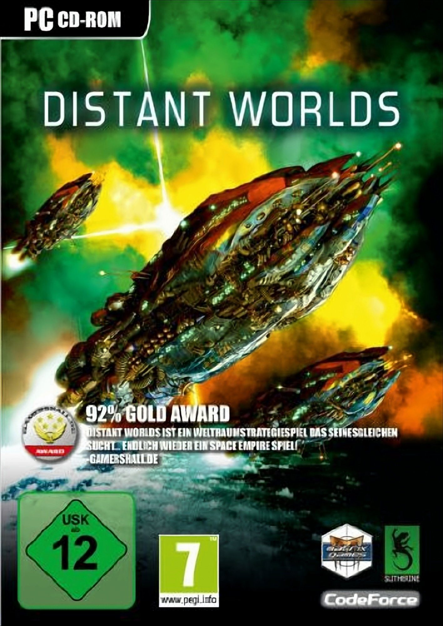 Spielbeschreibung | Distant Worlds ist das gigantische Weltraum-Strategiespieleiner neuen Generation. Erlebe die volle Tiefe und dentaktischen Detailgrad rundenbasierter Massive-MultiplayerOnline Games erstmals komfortabel steuerbar und in Echtzeit.Bis zu 1.400 Sternensysteme mit bis zu 50.000 Planeten,Monden und Asteroiden gilt es zu beherrschen. Baue, expandiere und verbessere dein Imperium ohneGrenzen. Die Galaxien bersten geradezu vor Leben undAktivität! Triff andere Imperien, unabhängige Alien-Kolonien,Händler, Piraten und Weltraum-Monster. Erforsche Planeten,Sonnensysteme, Asteroiden-Felder, Gaswolken, Supernovas, Galaktische Stürme und Schwarze Löcher. Entdecke Beweise für die Existenz frühere Zivilisationen und erkunde die Geheimnisse der Vergangenheit deiner Galaxie.Spiele nach deinen eigenen Regeln! Kurze Gemetzel imUmfeld deines Heimatsystems oder schier endloseKampagnen um die Vorherrschaft im gesamten bekanntenUniversum.Sprache/Untertitel: DeutschHandbuch: Deutsch Medium: CD-ROMAnzahl: 1Pentium IV 1,5 GHz, 1 GB RAM, 500 MB Festplattenspeicher, Win XP/Vista |