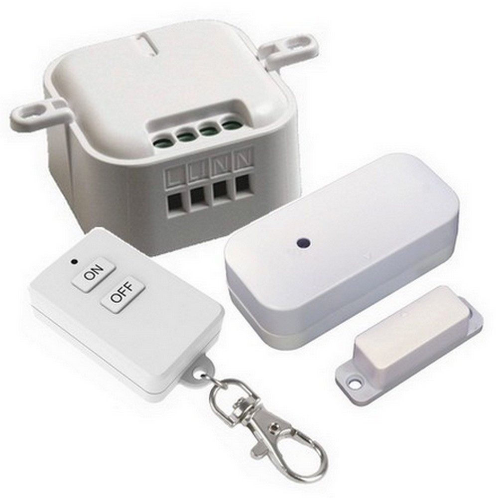 Sie befestigen den Funk-Magnetsensor + Magnet an Fenster und Rahmen. Stecken Sie den Dunsthaubenstecker in den Funkstecker. Wird jetzt das Fenster geöffnet, sendet der Sensor ein EIN-Signal zur Funk-Steckdose und nur dann kann die Dunsthaube betrieben werden. Der Hand-Sender kann den Stecker auch manuell schalten.