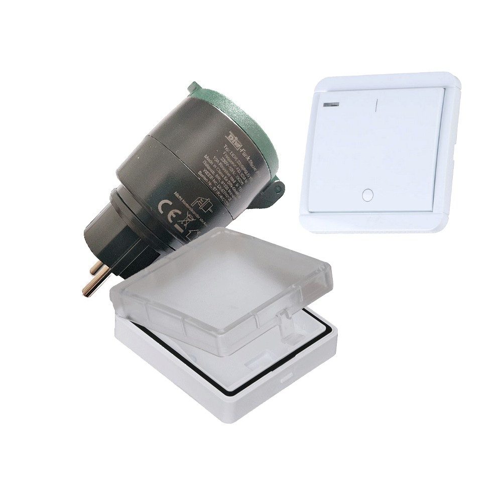 Ausstattung | Funksender mit Timer, Funkempfänger IP44, Schutzbox für Wandsender |