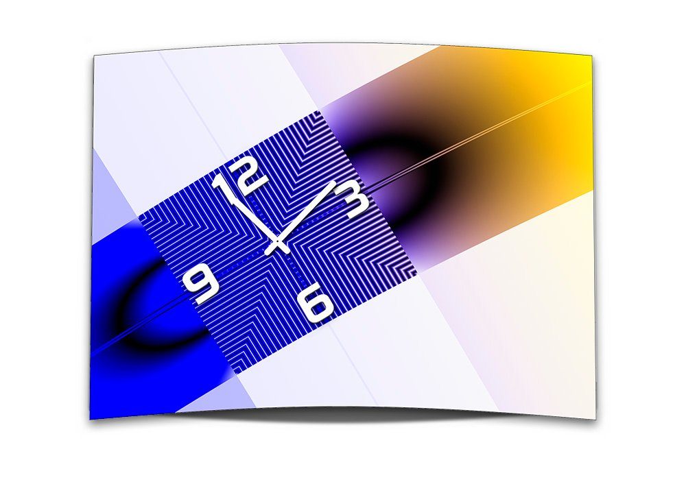 dixtime Wanduhr Wanduhr XXL 3D Optik Dixtime abstrakt blau gelb 50x70 cm (Einzigartige 3D-Optik aus 4mm Alu-Dibond)