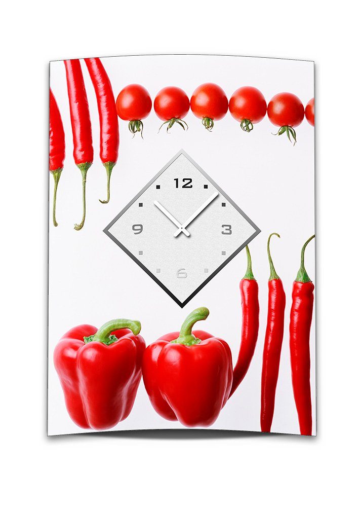 dixtime Wanduhr Wanduhr XXL 3D Optik Dixtime Tomate Paprika Chili 50x70 cm (Einzigartige 3D-Optik aus 4mm Alu-Dibond)