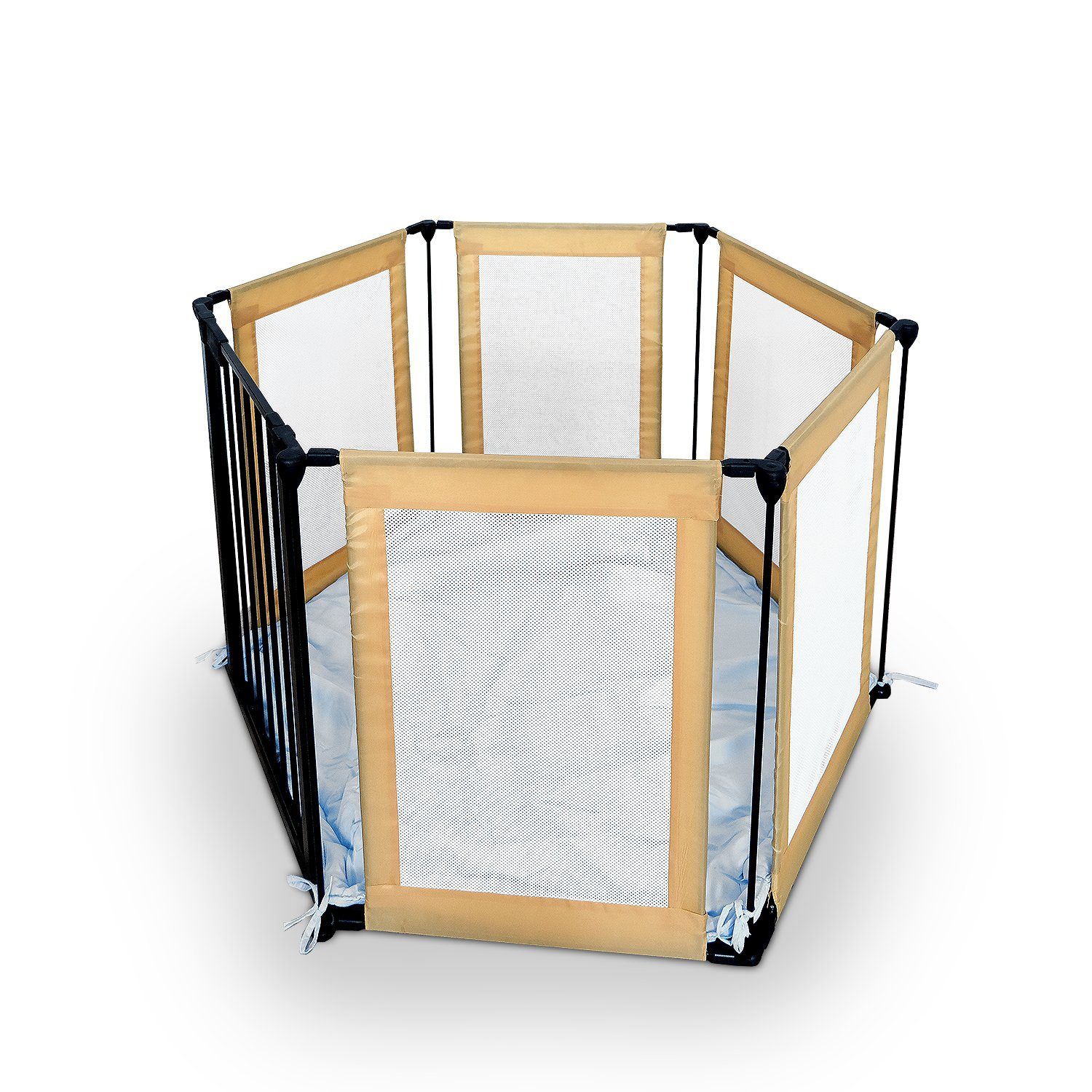 Beschreibung: Zustand: Neu 6-tlg. Laufgitter 6 Elemente inklusive Tür Massivausführung Abmessungen - pro Element (L x B) 67 cm x 42 cm Tür mit Kindersicherung alle 6 Füße verfügen über einen "Anti-Rutsch" Belag Gewicht 15 Kg Bespannungsstoff: 100% Polyester
