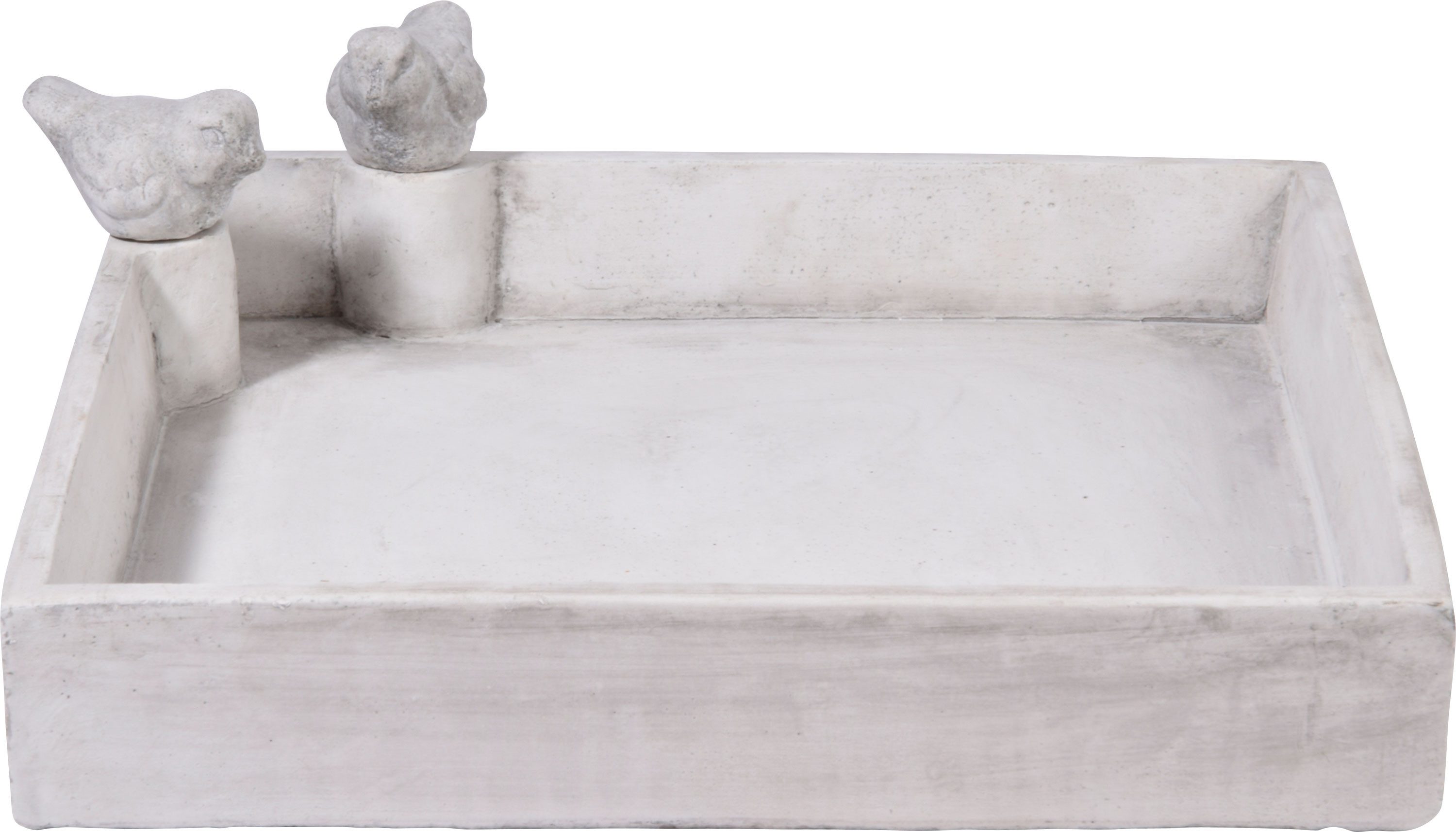 So macht das Antik anmutende Äußere das weißenVogelbecken zu einem dekorativen Gestaltungselement für den Garten und zweiDeko-Vögel auf dem Rand der Wasserschale setzen einen weiteren auffälligenoptischen Akzent.
