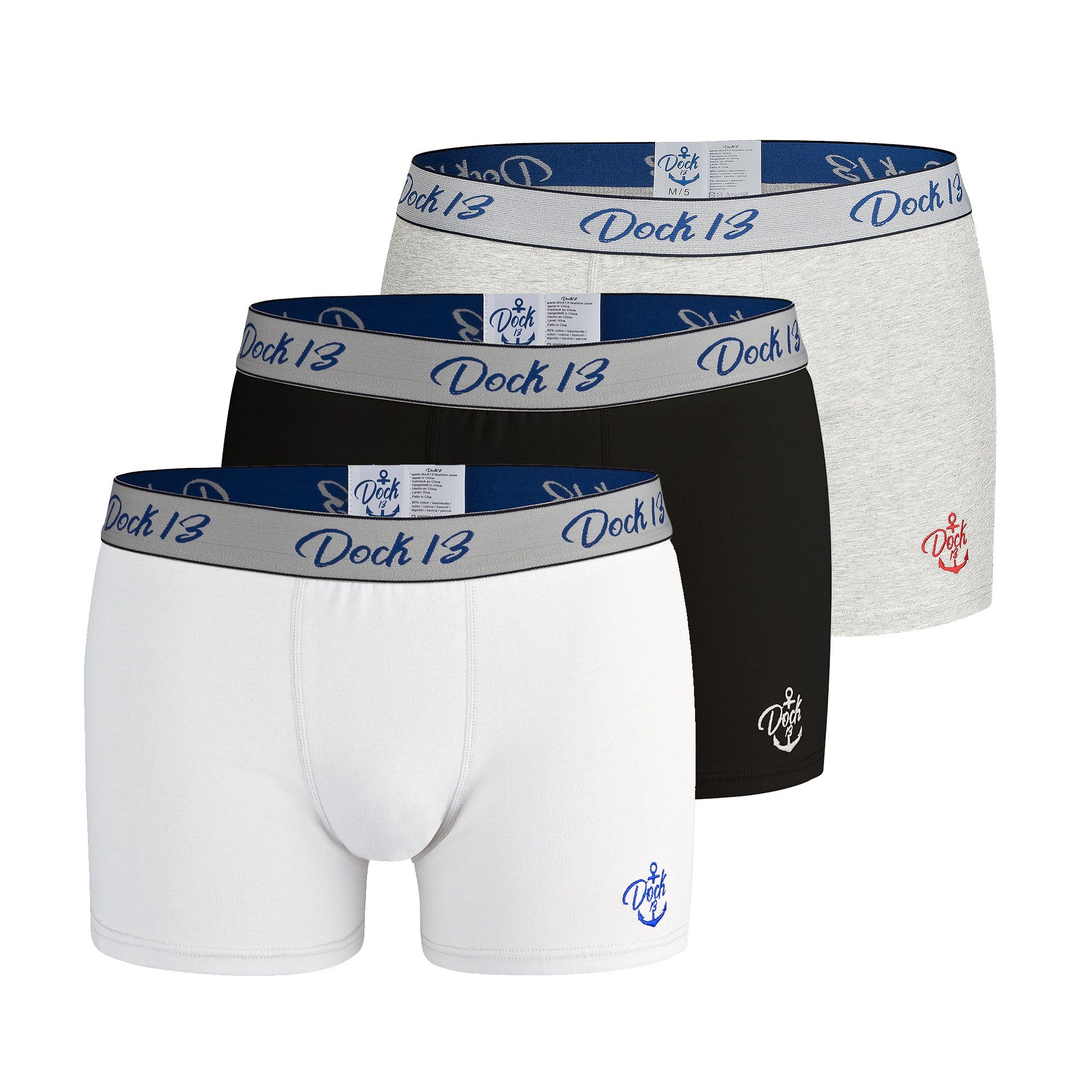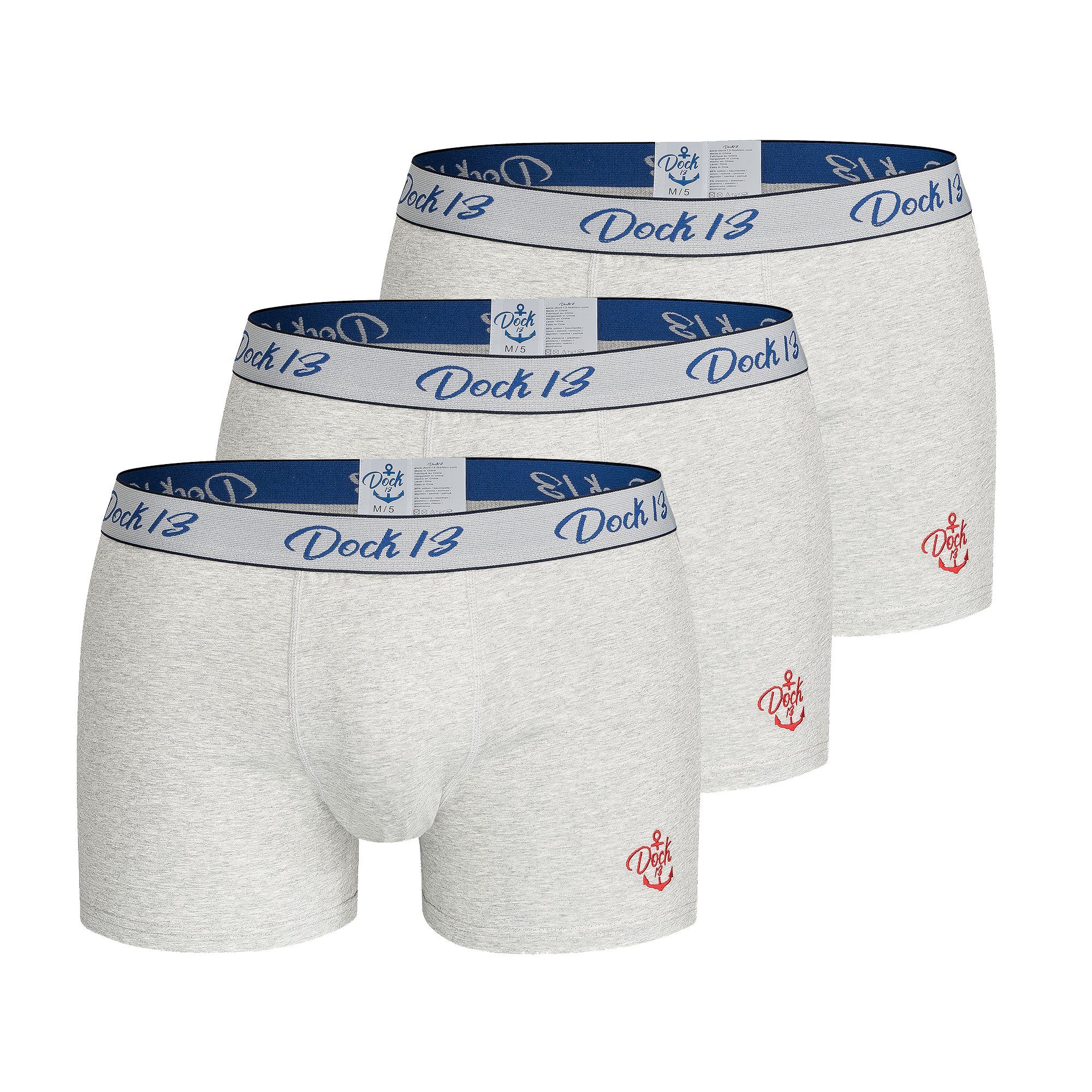 Die Dock13 Boxershorts „Grömitz“ ist eine Herren Boxershorts in unserem Schnitt „Regular Retro“. Sie ist eine enganliegende, klassische Männer Unterhose mit mittlerer Длина ноги, welche sich durch einen passgenauen Sitz auszeichnet. Das weiche und strapazierfähige Baumwollmaterial erweist sich durch seine Dehnbarkeit als optimaler Wegbegleiter in jeder Lebenssituation. Unsere „Regular Retroshorts“ wurden dafür konzipiert, dass Sie bequem sitzt und auch problemlos beim Sport getragen werden kann. Wir setzen auf beste Qualität. Unser Bund ist gewebt und nicht gedruckt. Für unser Logo nutzen wir eine Stickerei, damit dieses auch nach mehreren Wäschen noch wie neu aussieht!