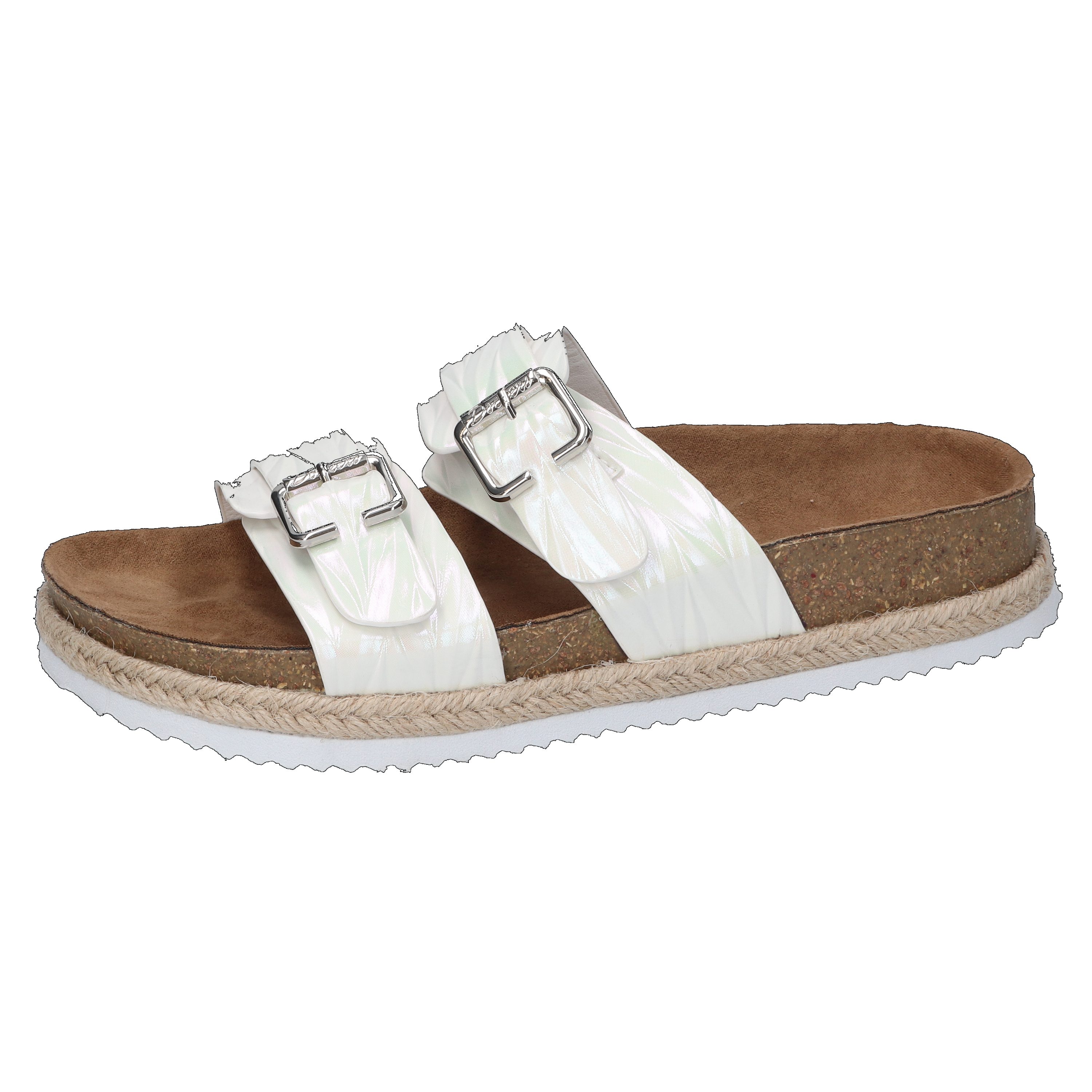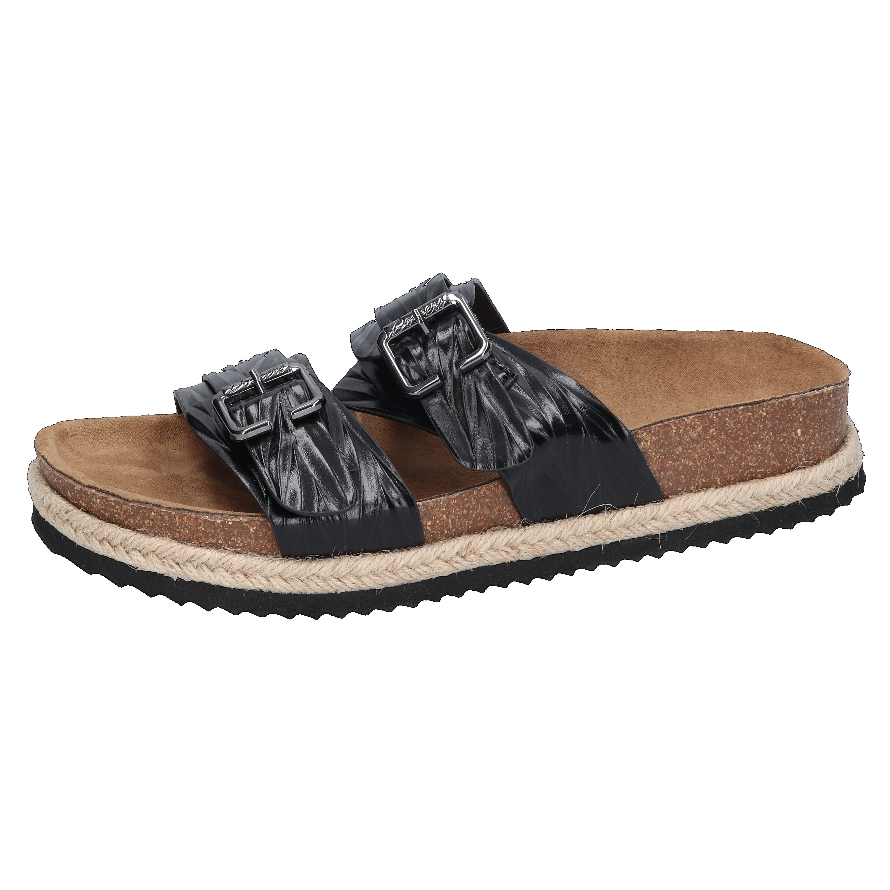 Modische Pantoletten mit sommerlich umflochtener Sohle und zwei praktischen Спрятать für eine individuelle Anpassung.