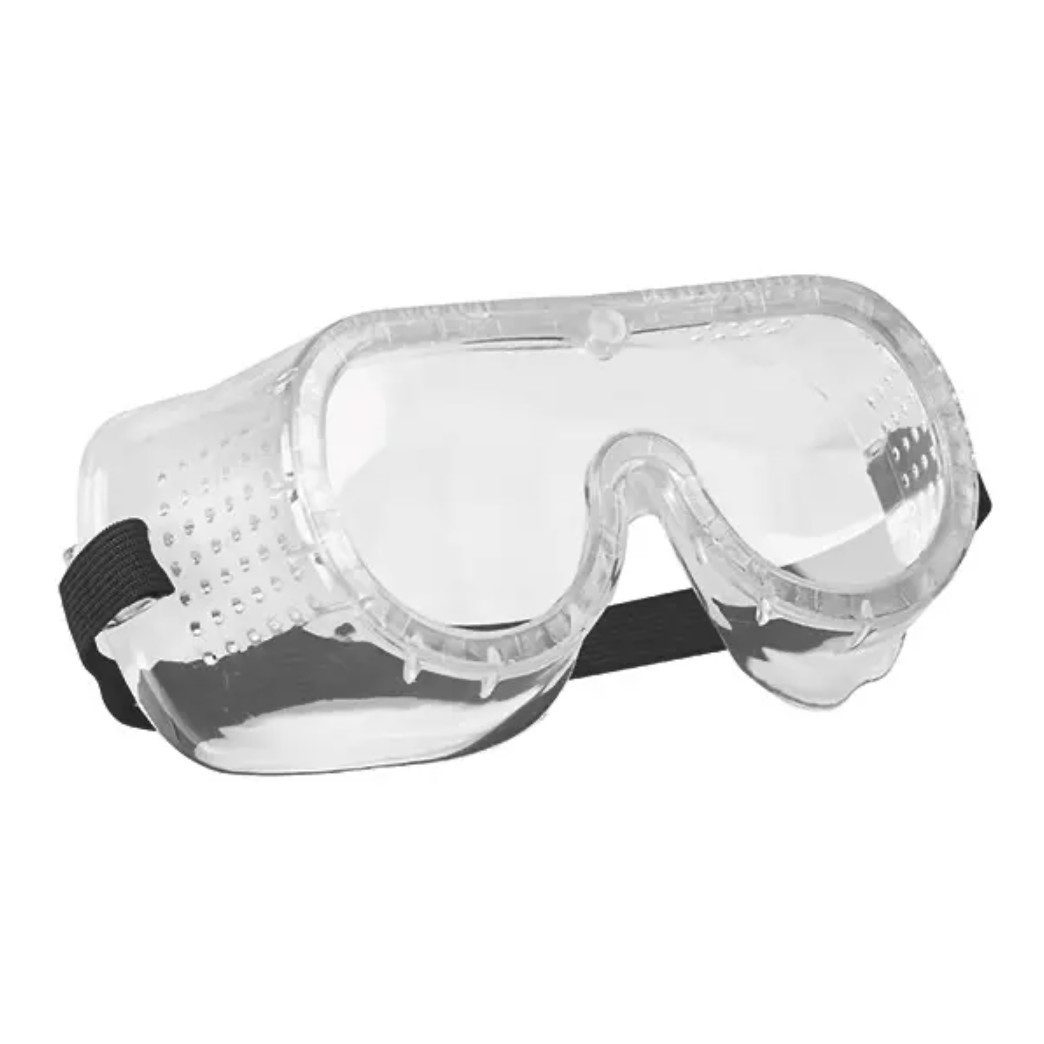 Vollsichtschutzbrille aus flexiblem PVC mit weitem Sichtfeld für zuverlässigen Schutz gegen Grobstaub > 5 µm – ideal für Werkstätten, Baustellen und Lagerarbeiten.