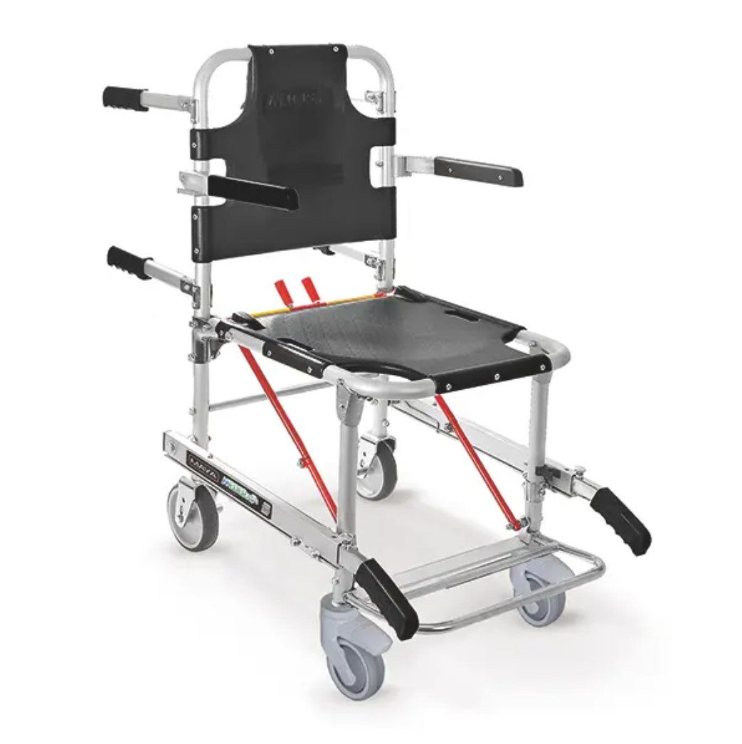 Der faltbare Tragestuhl ermöglicht einen sicheren und komfortablen Transport sitzender Patienten, besonders geeignet für enge Räume und Treppenhäuser.