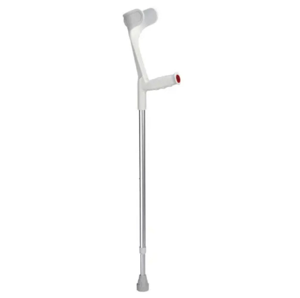 Elegantes Design: Die silberne Rohrfarbe verleiht der Unterarm-Gehstütze ein modernes Aussehen, das sowohl Funktionalität als auch Stil für den täglichen Einsatz bietet.