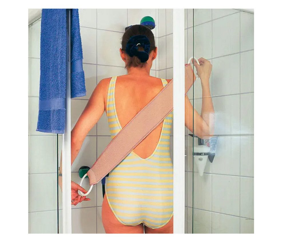 Der Rückenwasch-Gurt erleichtert das Erreichen der Rückenseite beim Duschen, ideal für Menschen mit eingeschränkter Beweglichkeit oder Senioren, die Hilfe beim Waschen brauchen.