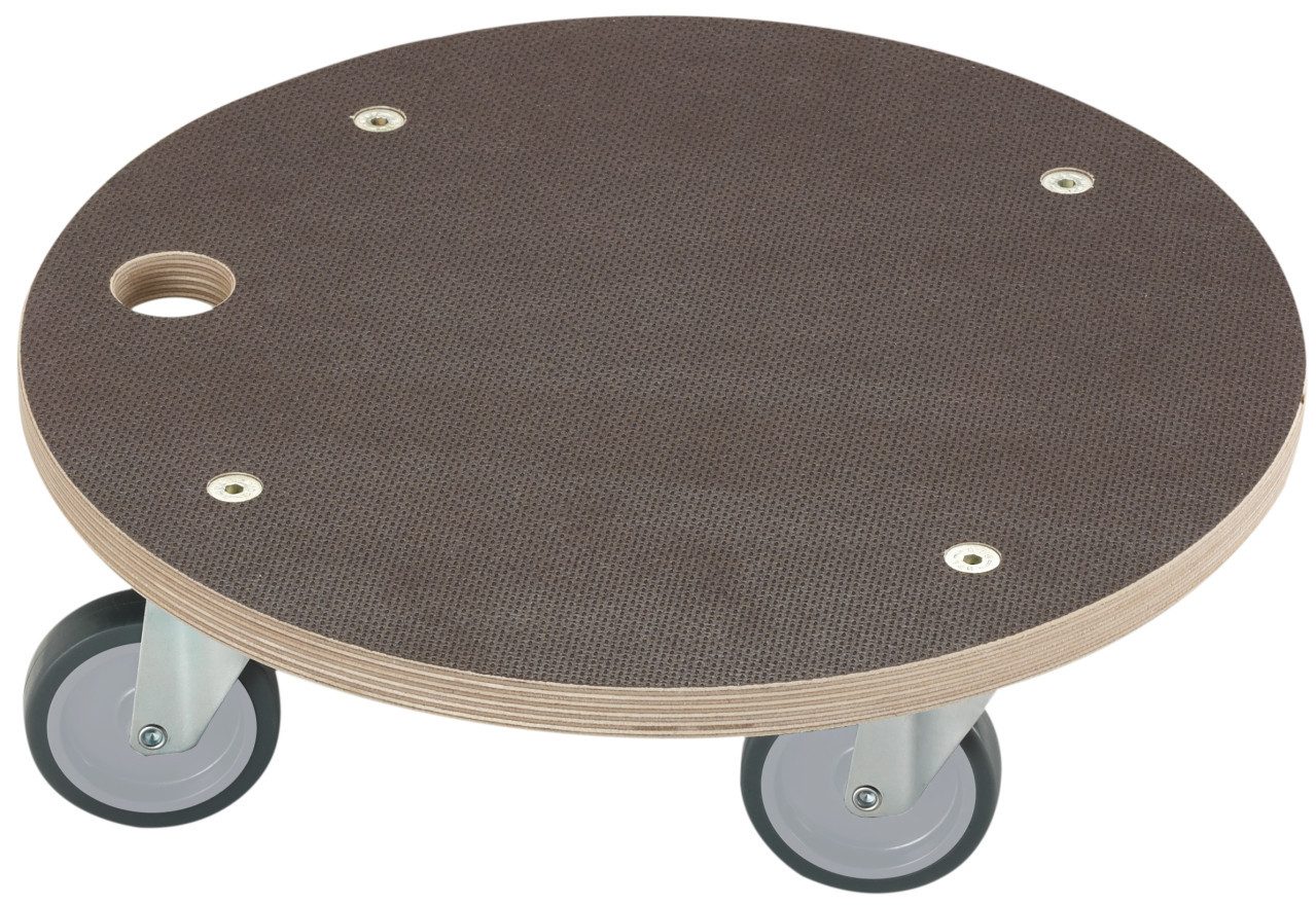 Umziehen, Umräumen und Renovieren leicht gemacht mit der Transporthilfe Maxi-Soft. Die starke und witterungsbeständige 18mm Siebdruckplatte bewegt praktisch und sicher schwere Lasten und unterstützt bei Umzug, Werkstatt und Baustelle. 4 um 360° drehbare und softe TPE Lenkrollen haben einen großen Durchmesser und sind bestens geeignet auch für empfindliche Bodenarten. Die Antirutschoberfläche sorgt für sicheren Transport. Rollen mit weichen Laufflächen sollen nicht auf unversiegeltem, saugfähigem Untergrund wie Stein, Holz oder Parkett eingesetzt werden. Das bei TPE-Rollen produktionsbedingt enthaltene Weißöl kann austreten und zu Kontaktverfärbungen führen. Bei versiegelten Böden verfliegt dieses Öl rückstandsfrei. Bei hohen Temperaturen kann Fett aus dem Drehkranz oder dem Lager austreten. Bitte prüfen Sie die Bodenverträglichkeit vor Anwendung. Bei Weichholz, Kork oder ähnlichen Bodenbelägen können alle Rollen Vertiefungen oder Streifen hinterlassen.
