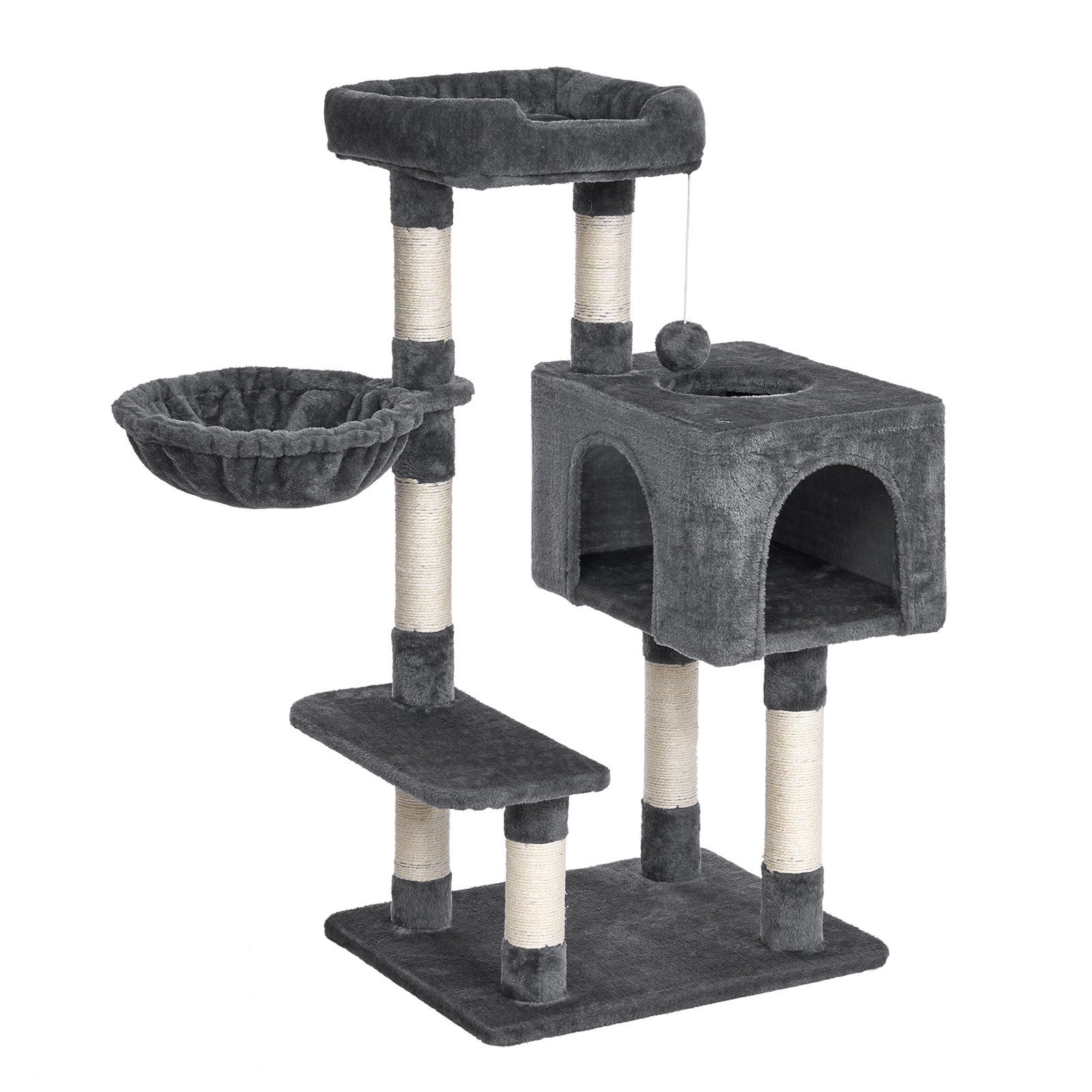 Dieser moderne Kratzbaum mit Katzenturm bietet alles, was Stubentiger lieben: weiche Plattformen, eine gemütliche Hängematte, ein großes Katzenhaus mit 3 Eingängen sowie einen stabilen Aussichtspunkt. Ideal zum Spielen, Beobachten und Ausruhen.